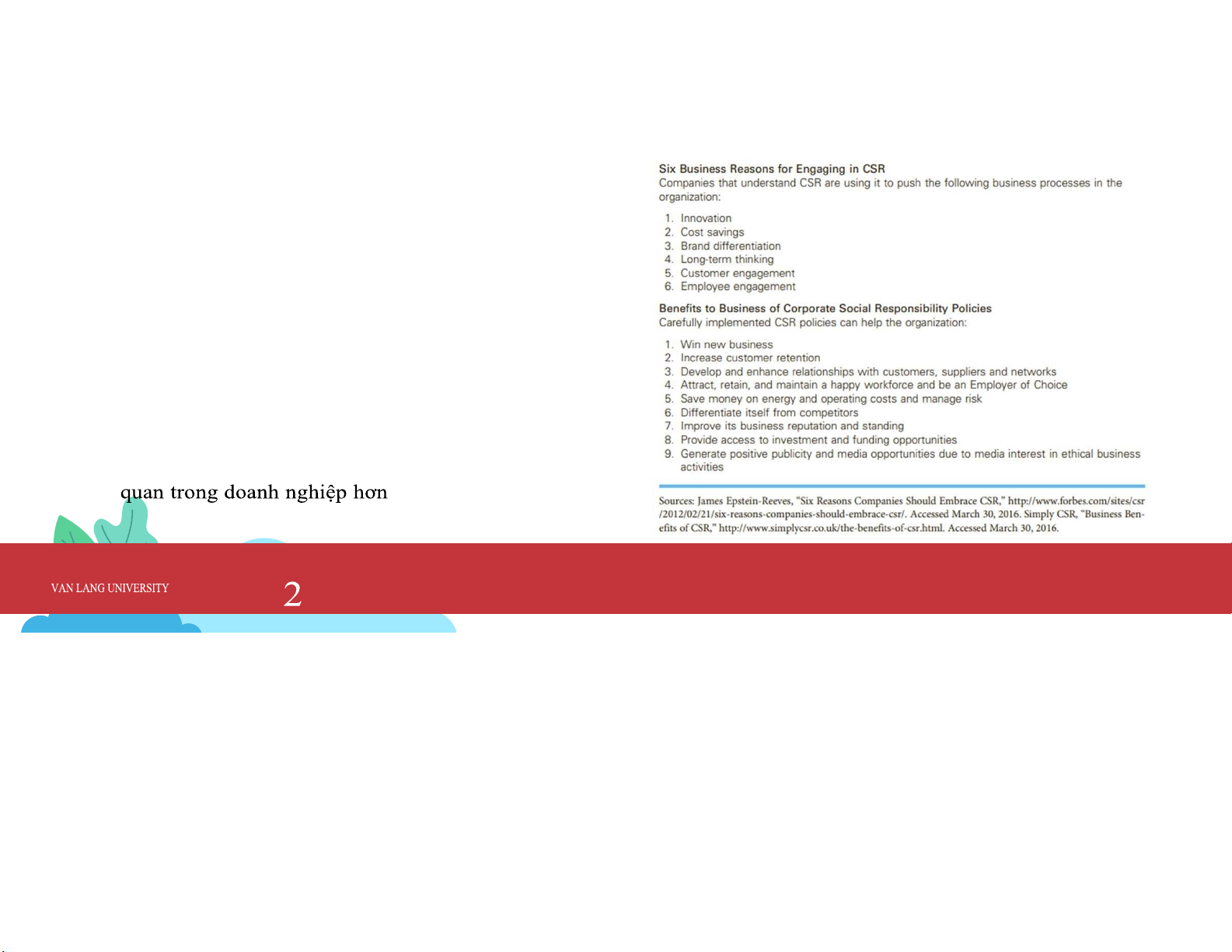 • Bằng việc theo đuổi các chương trình CSR, các doanh