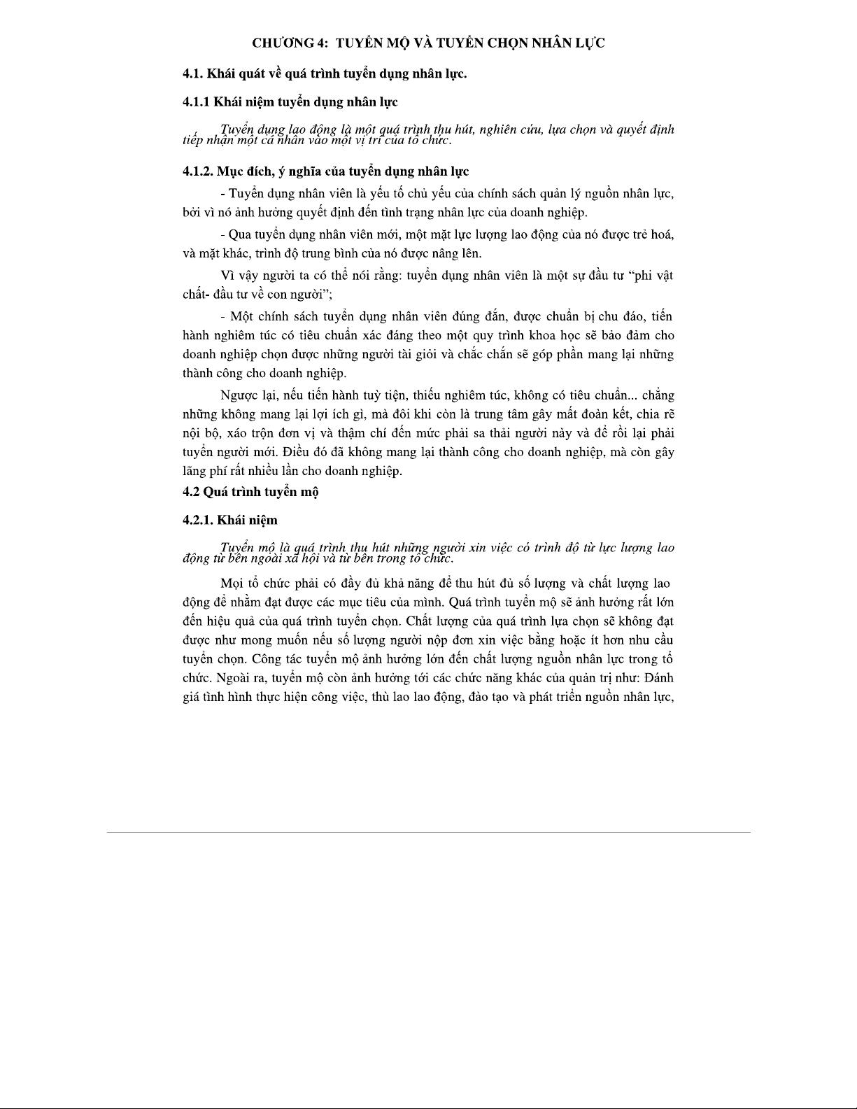Chương 4: Tuyển Mộ và Tuyển Chọn Nhân Lực - Phần 1 (Quản Trị Nhân Sự)