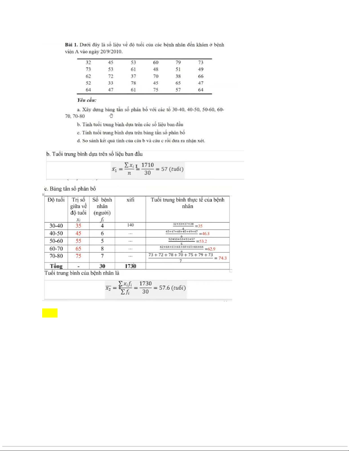 Note: có khoảng cách tổ -> tính trị số giữa làm lượng biến đại diện rồi mới tính được tuổi trung bình