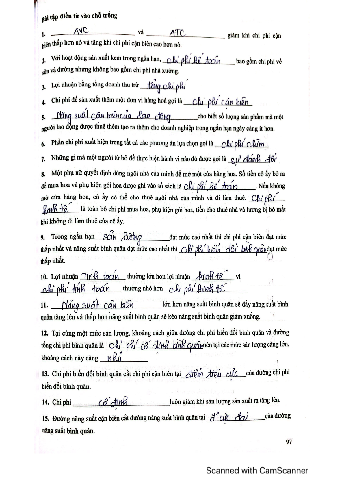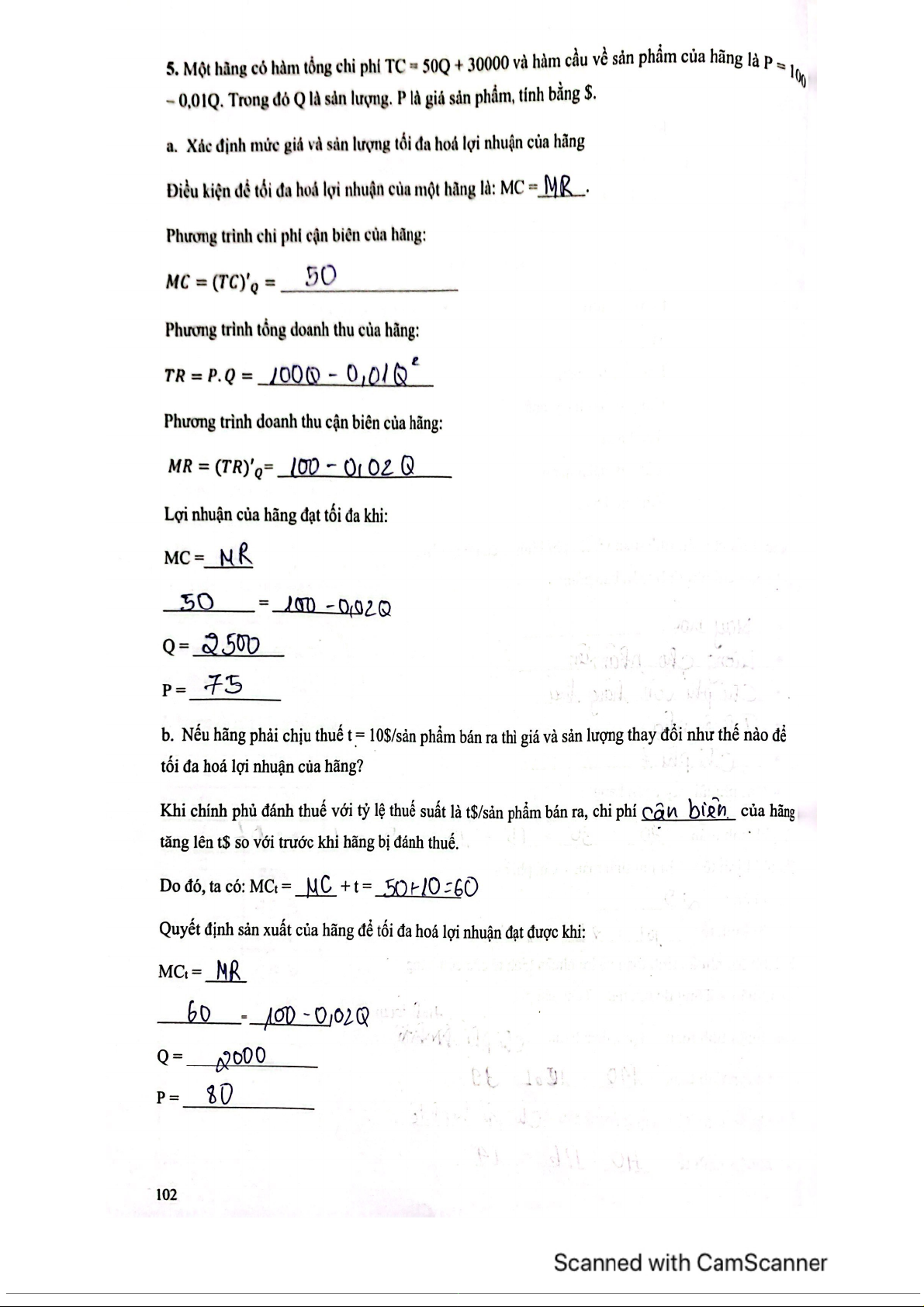 Chương 5 Bài tập và giải thích môn Kinh tế vi mô | Trường Đại học Kinh Tế Quốc Dân