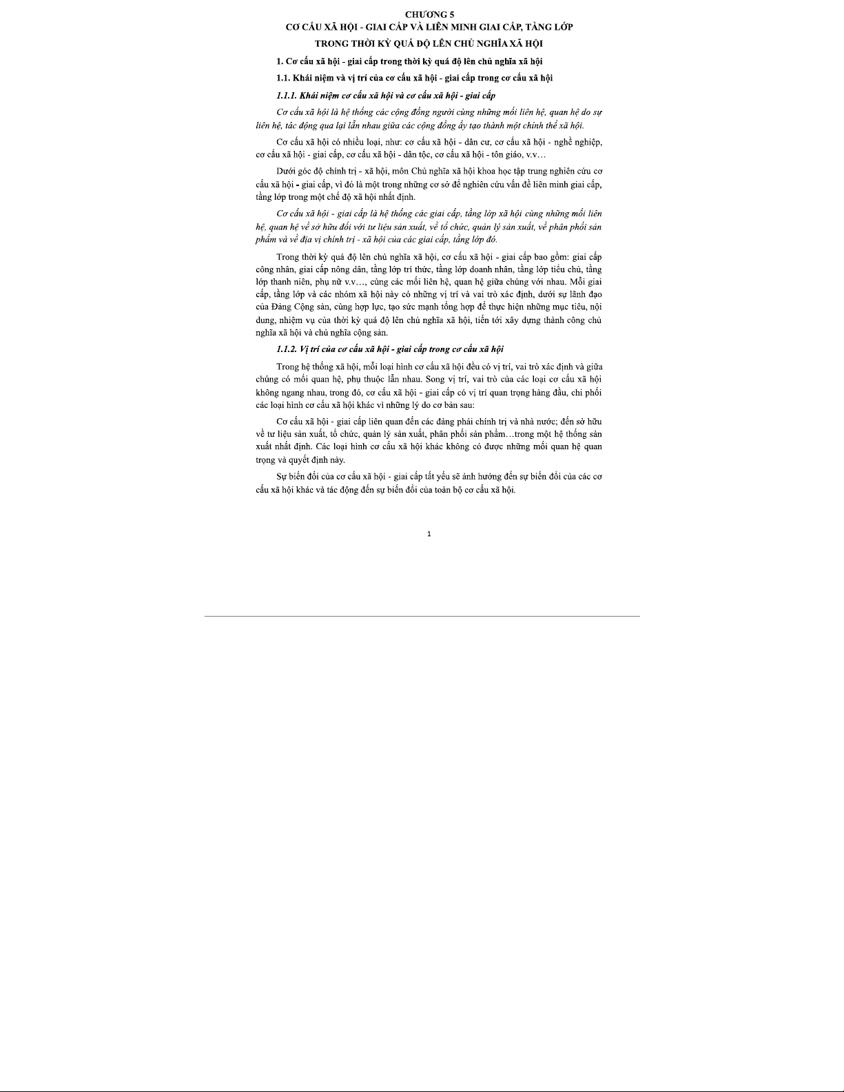 CHƯƠNG 5: CƠ CẤU XÃ HỘI - GIAI CẤP TRONG THỜI KỲ QUÁ ĐỘ LÊN CNXH