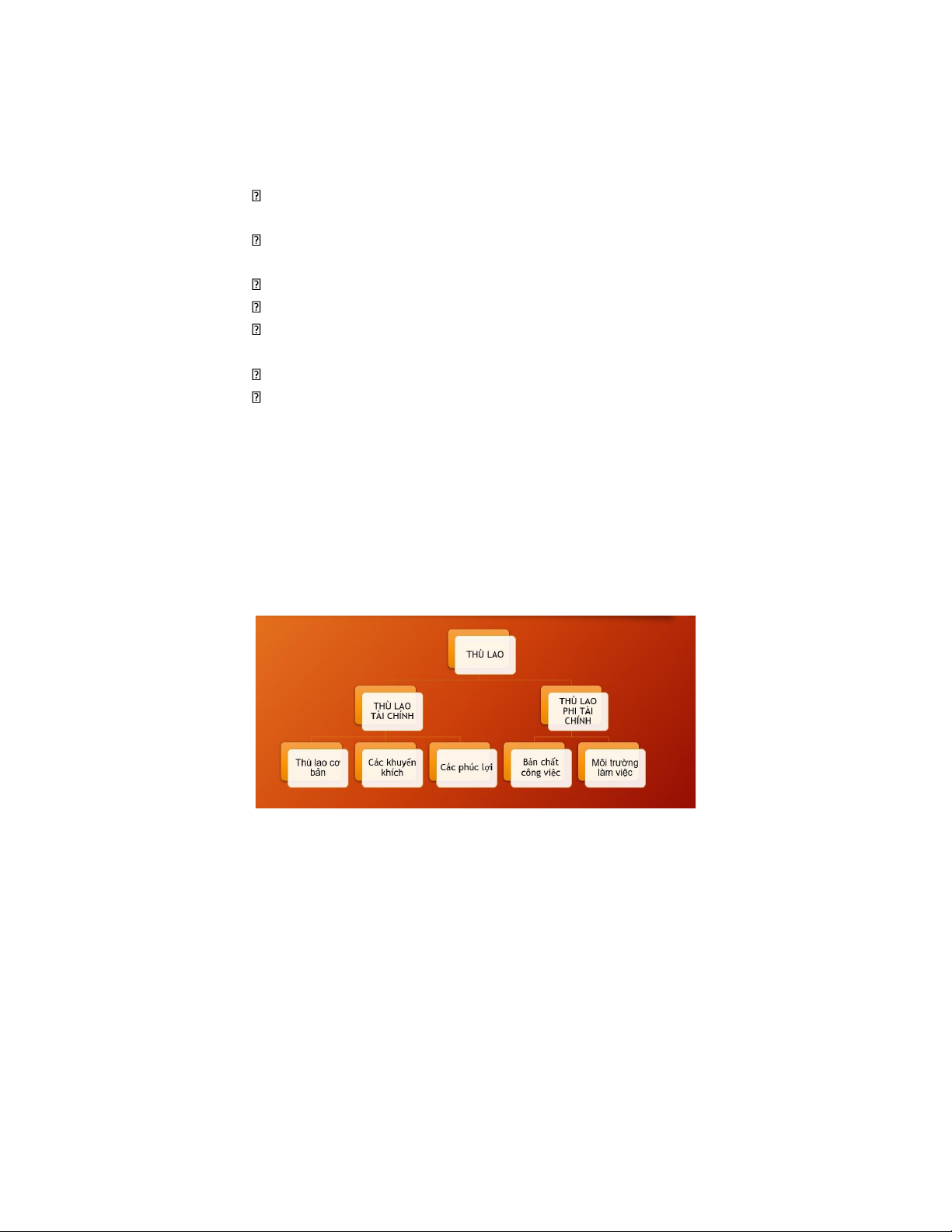 o Chính sách và chế độ quản trị o Sự giám sát o Tiền lương o Các quan hệ con người o Điều kiện làm việc
