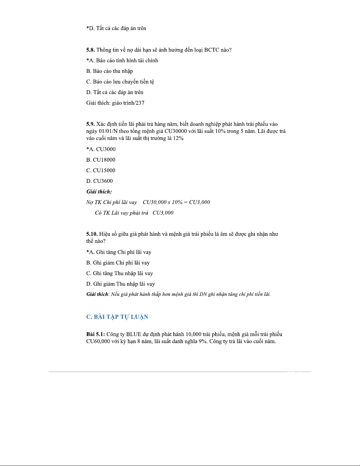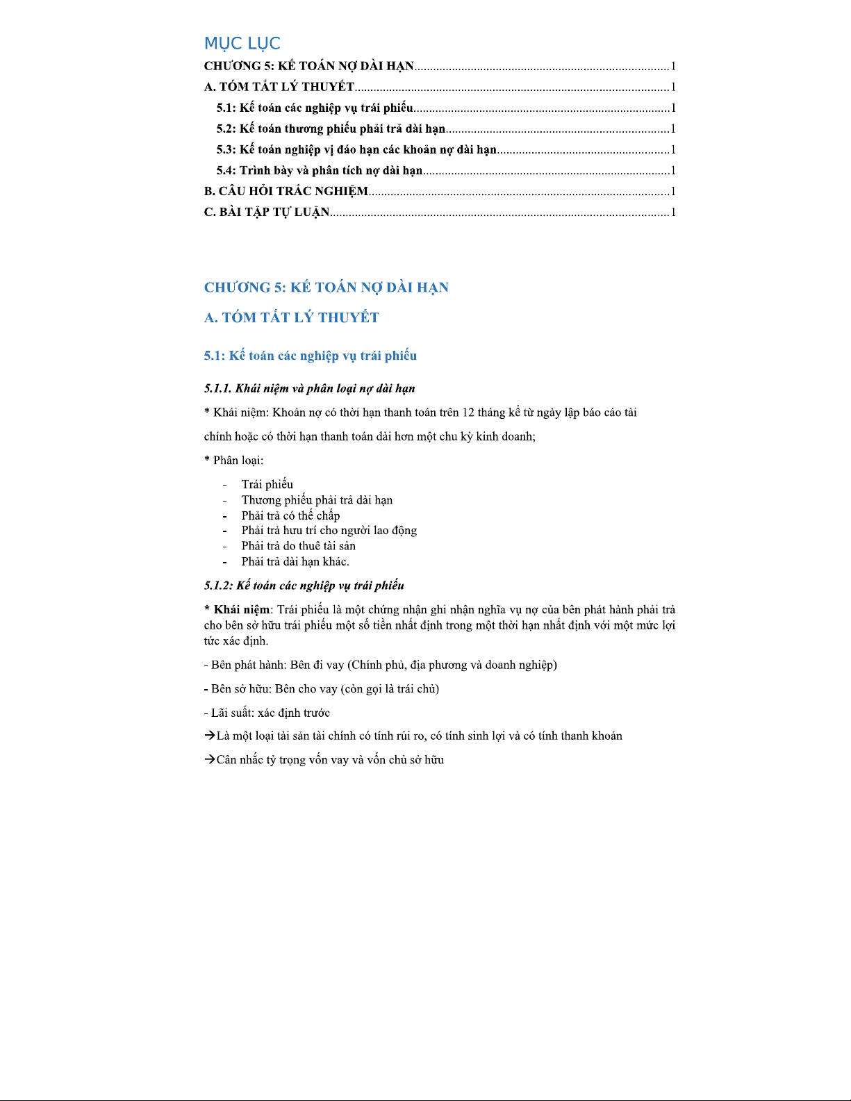 Chương 5 KTT2 - Kế toán Nợ Dài Hạn và Bài Tập Kế Toán Tài Chính 2
