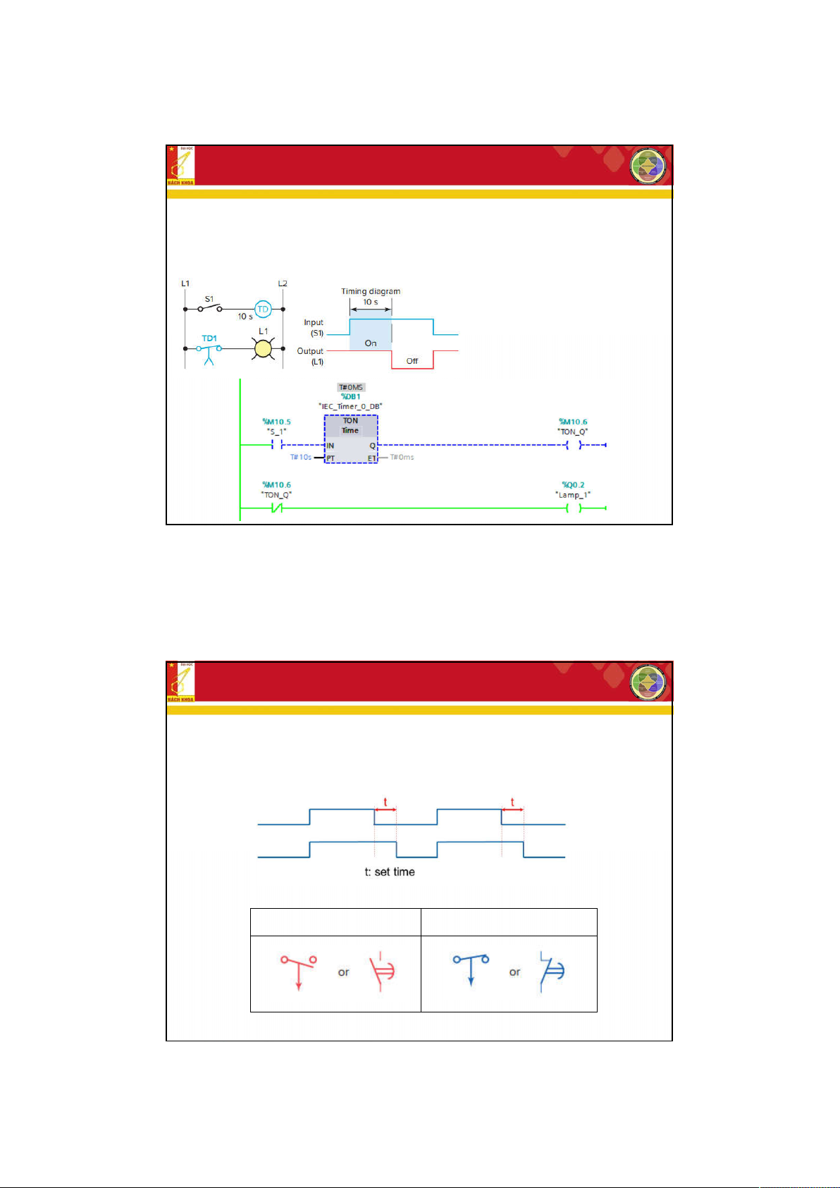 + Rơ le thời gian tác động đóng trễ (ON delay relay timer): TON INPUT OUTPUT Ký hiệu:
