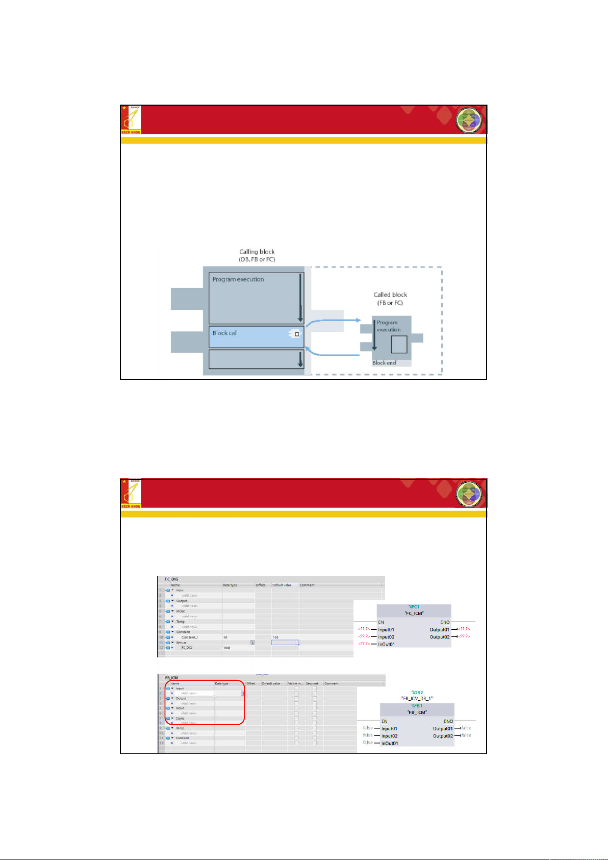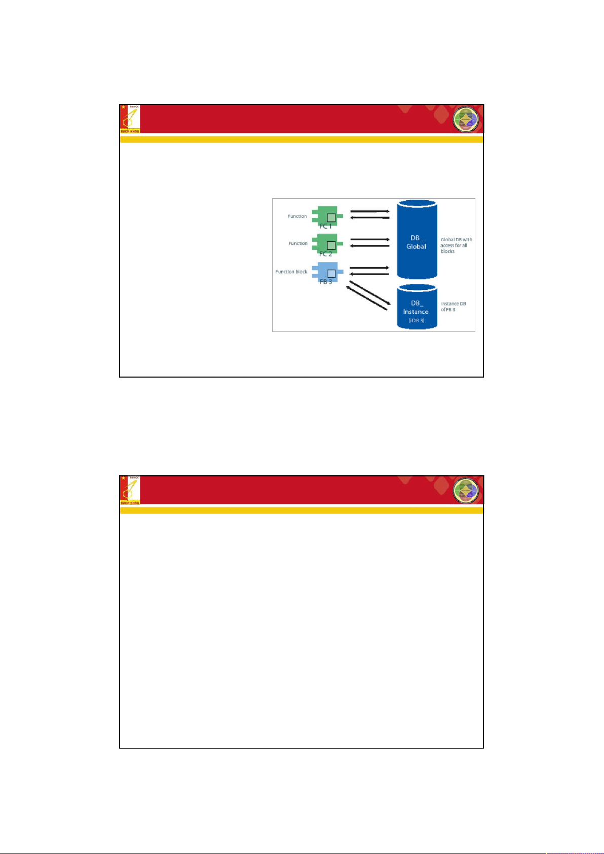 + FB (Function Block): Chứa chương trình con được tổ chức thành hàm và có khả năng