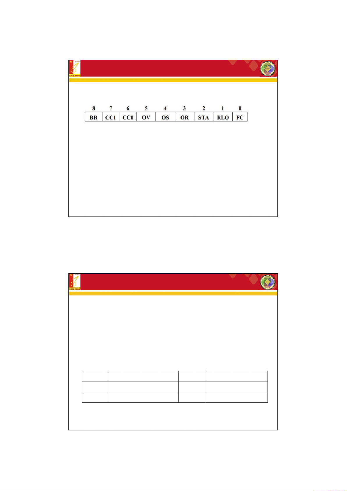 không bị thay đổi, ‘x’ chỉ nội dung thay đổi theo lệnh). BR CC1 CC0 OV OS OR STA RLO FC - - - - - - - x 1