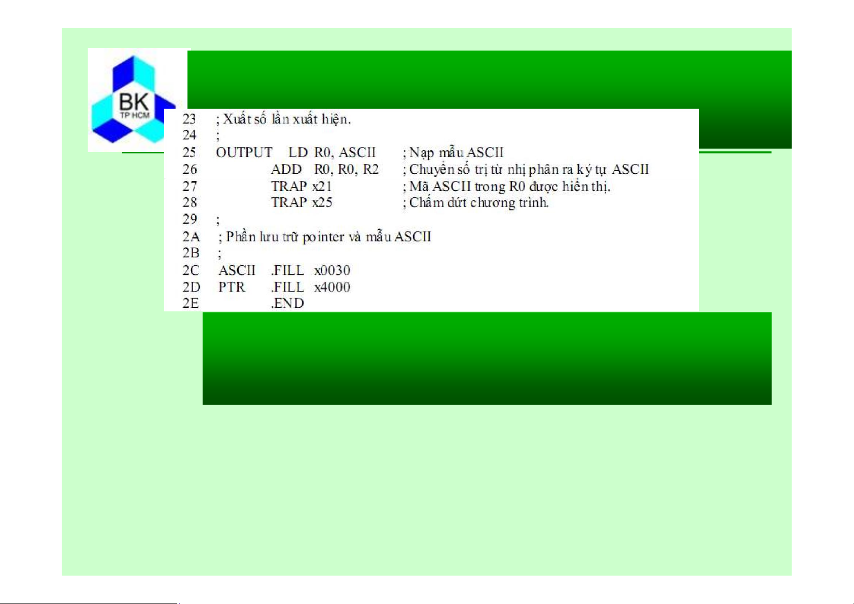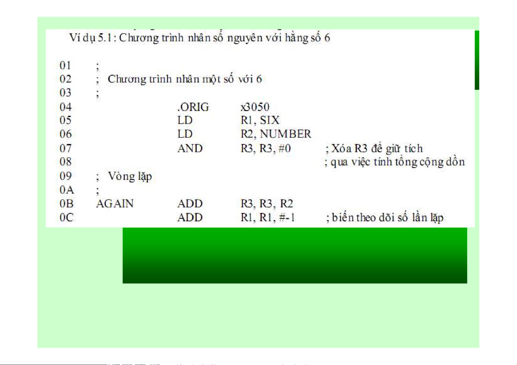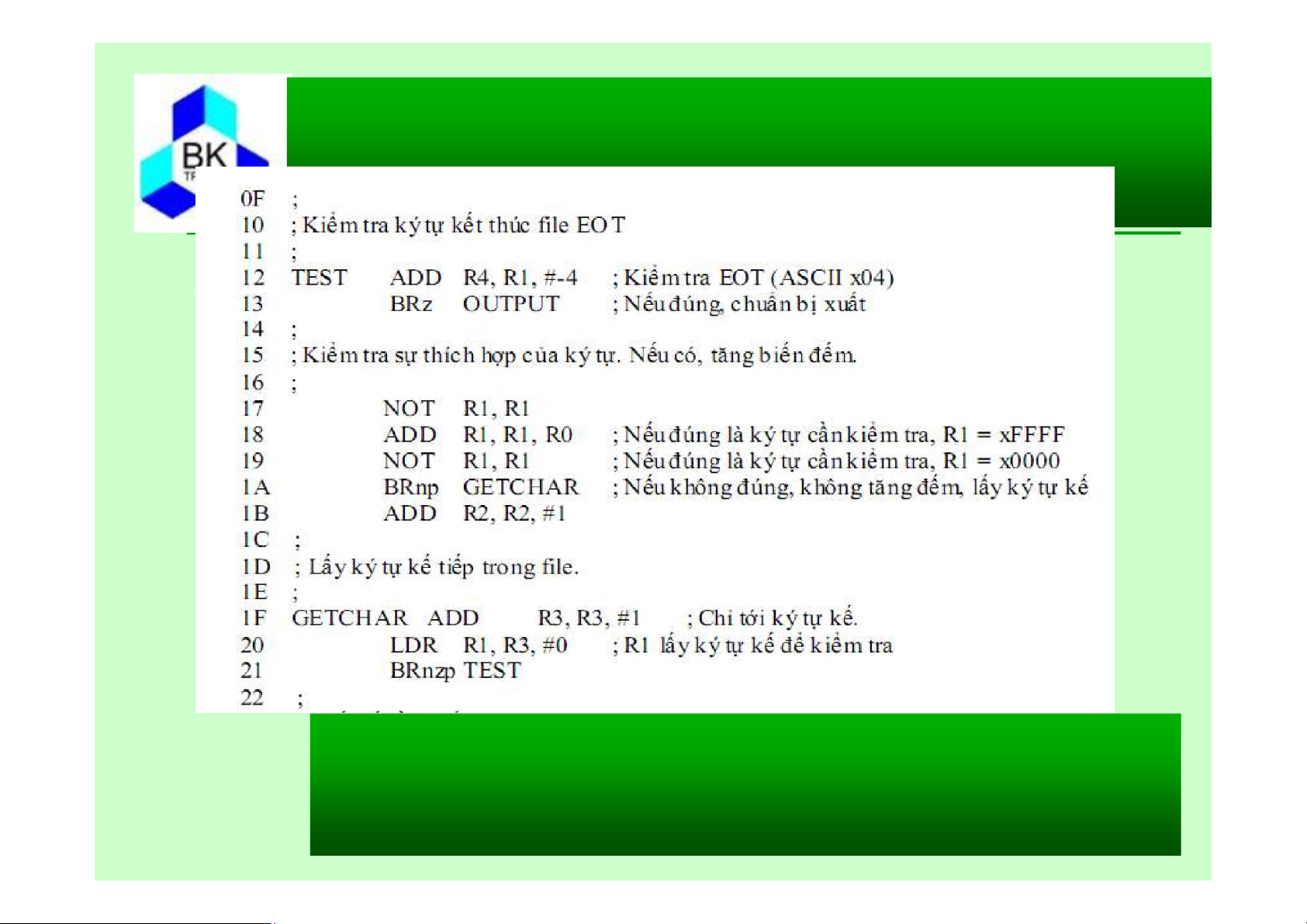trong lệnh (như trị 0 trong dòng 07). lOMoAR cPSD| 59455093 AND R3, R3, #0 ; xóa R3 để giữ tích
