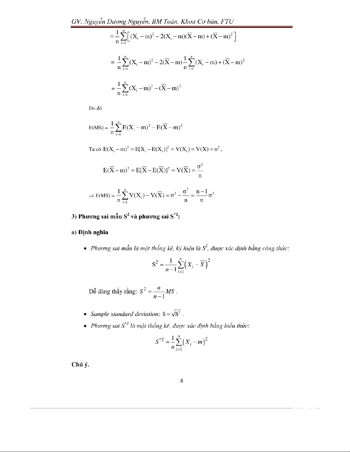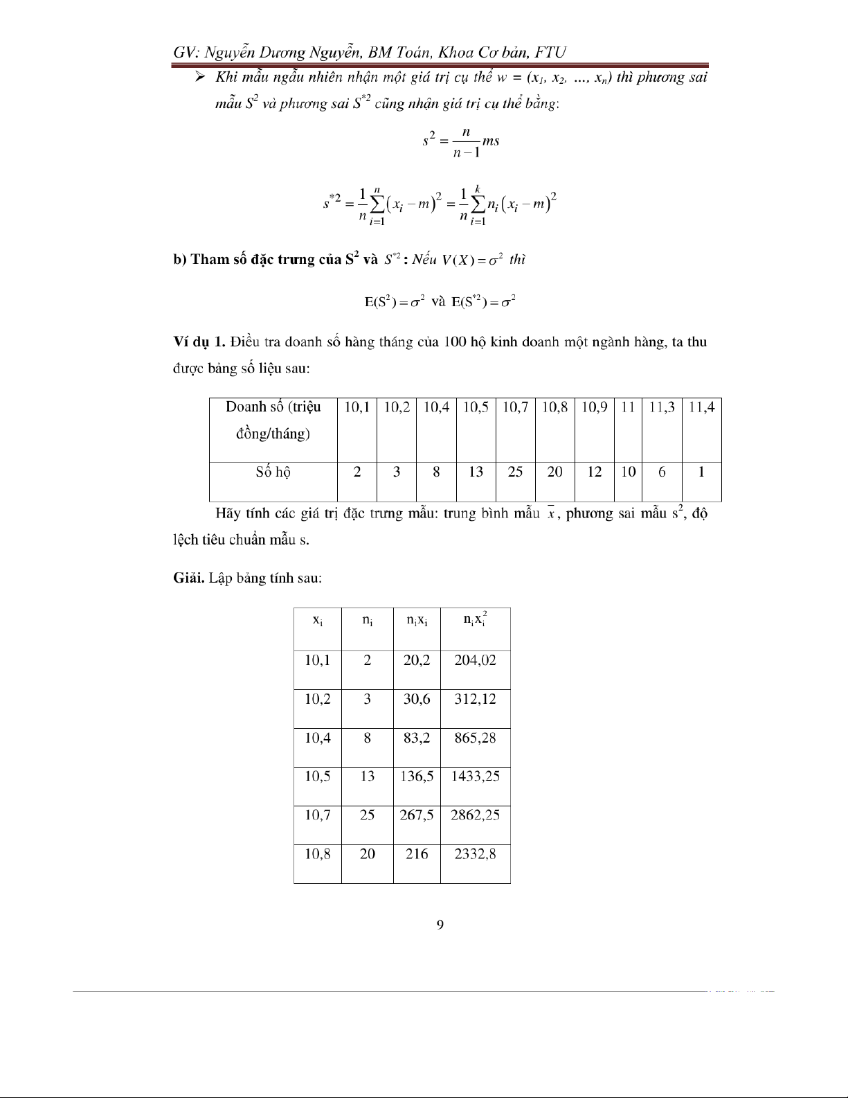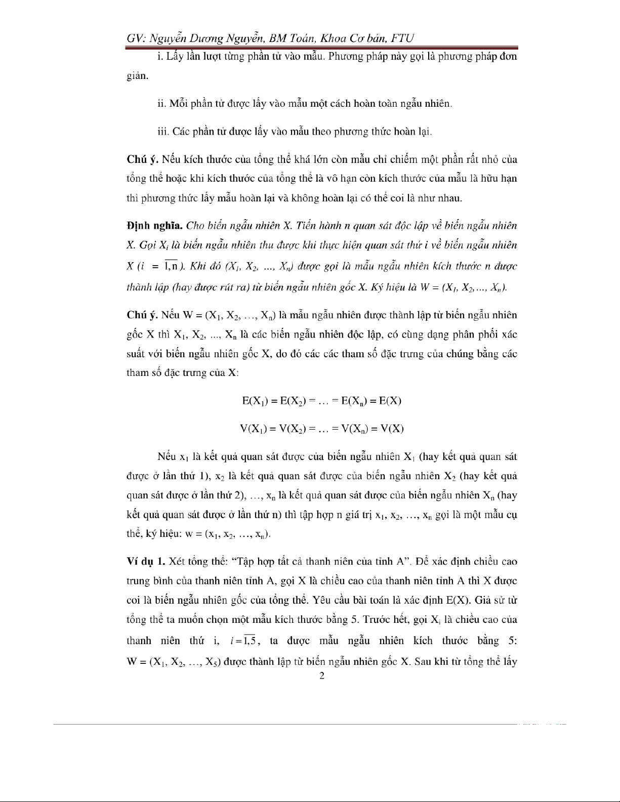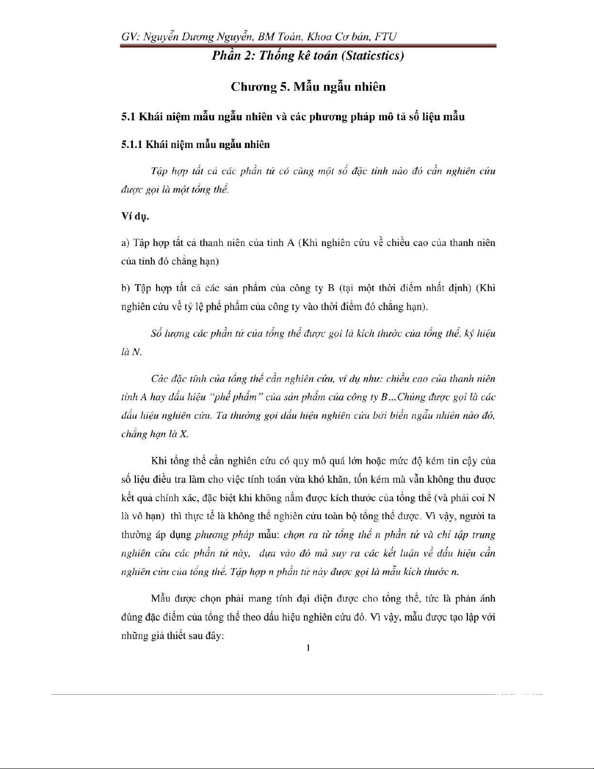 Chương 5: mẫu ngẫu nhiên trong thống kê toán môn Xác suất thống kê| Trường Đại học Ngoại Thương