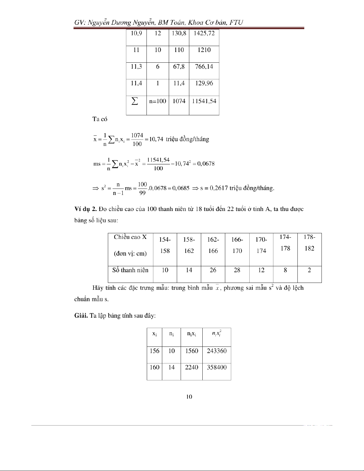 Exercises for probability & statistics môn Xác suất thống kê| Trường Đại học Ngoại Thương