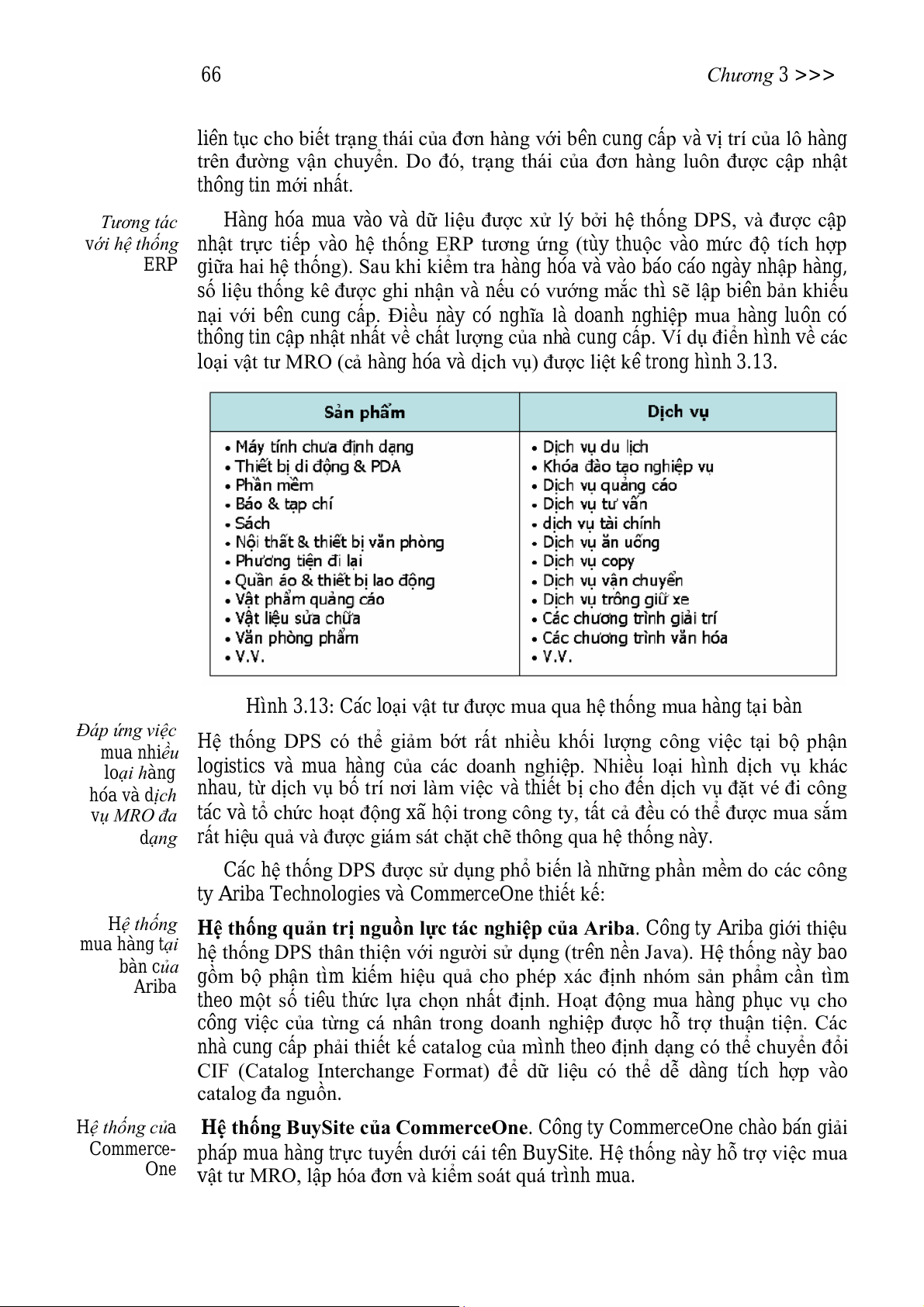 loại vật tư MRO (cả hàng hóa và dịch vụ) được liệt kê trong hình 3.13.