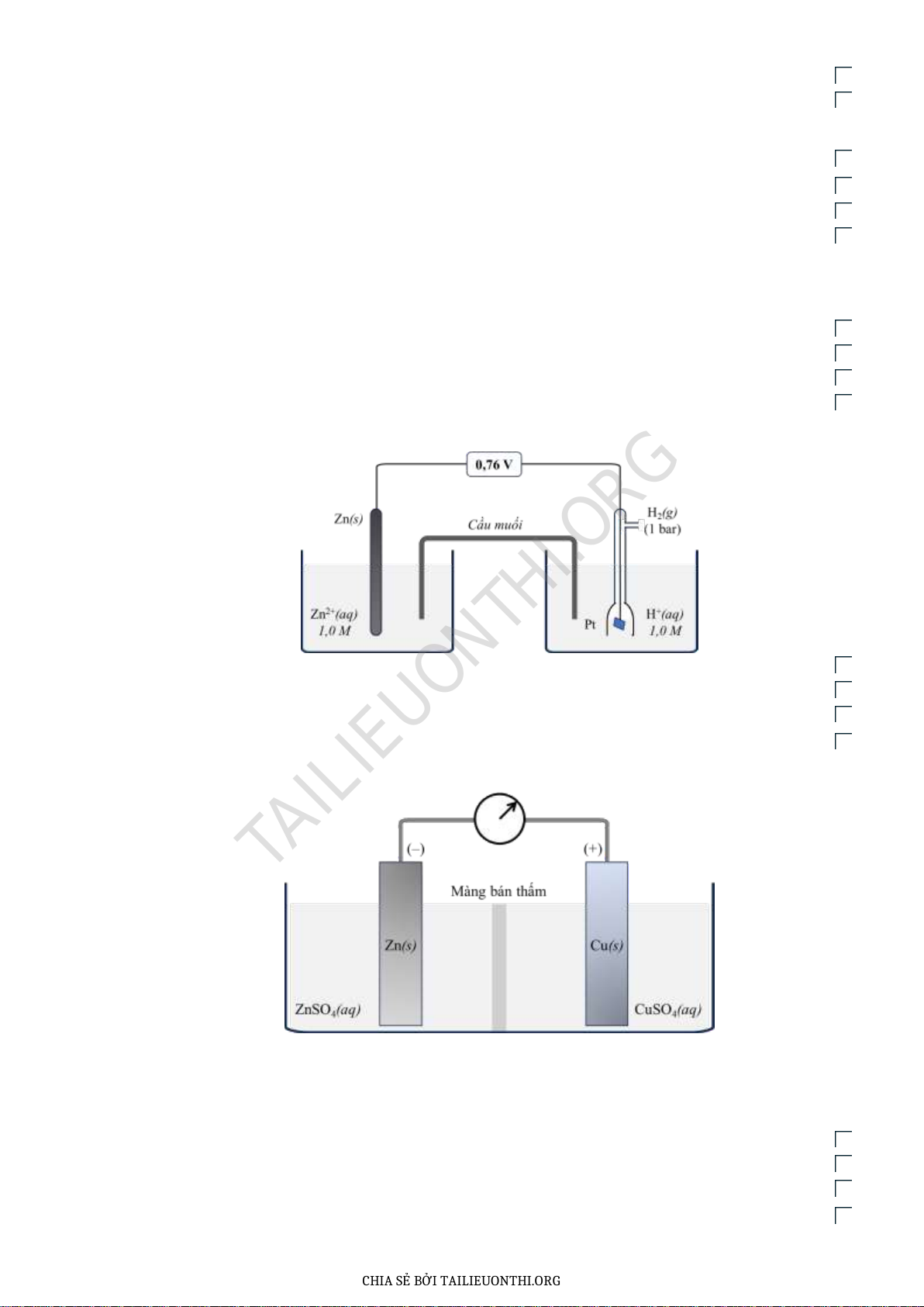 Câu 21: Một pin Galvani có cấu tạo như sau: TAILIEUONTHI.ORG