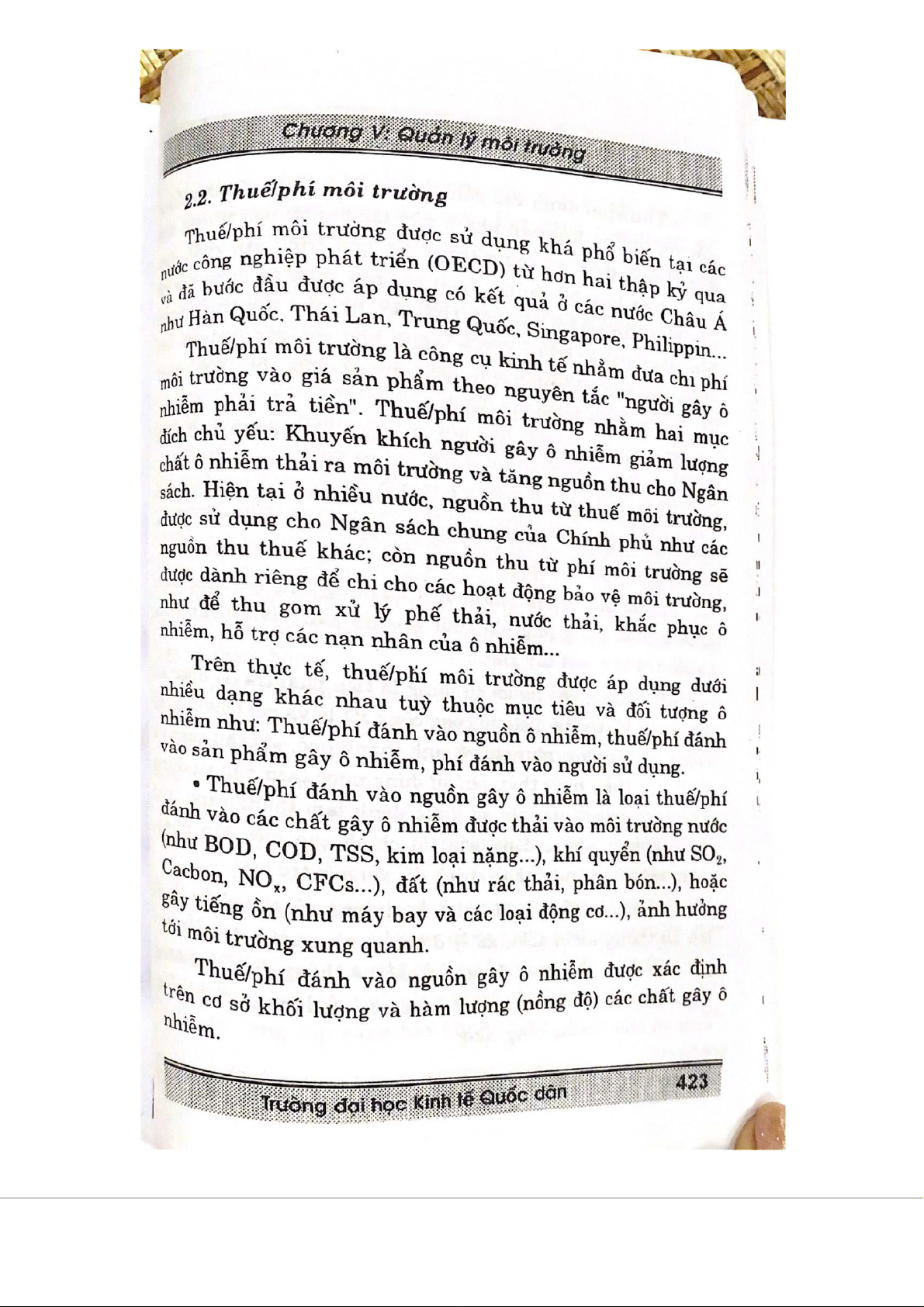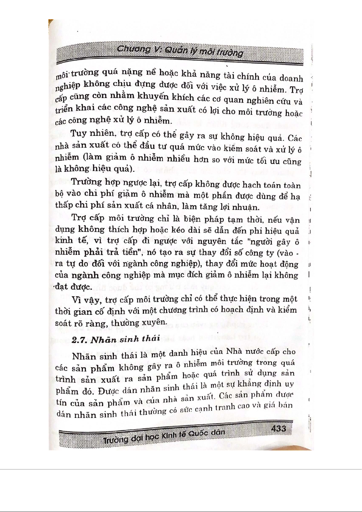 Chương 5 Quản lý môi trường môn Kinh tế vi mô | Trường Đại học Kinh Tế Quốc Dân