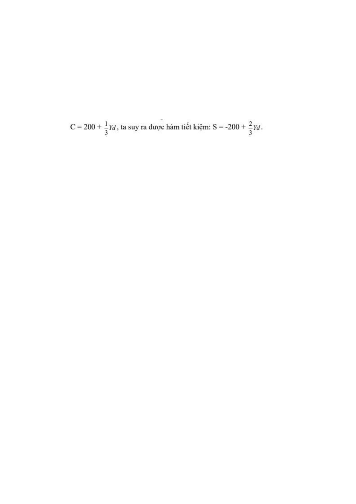 => ΔΥ=- Hàm tiết kiệm mới: S= -200 +(1/3)Y + 100=-100+ (1/3)Y.