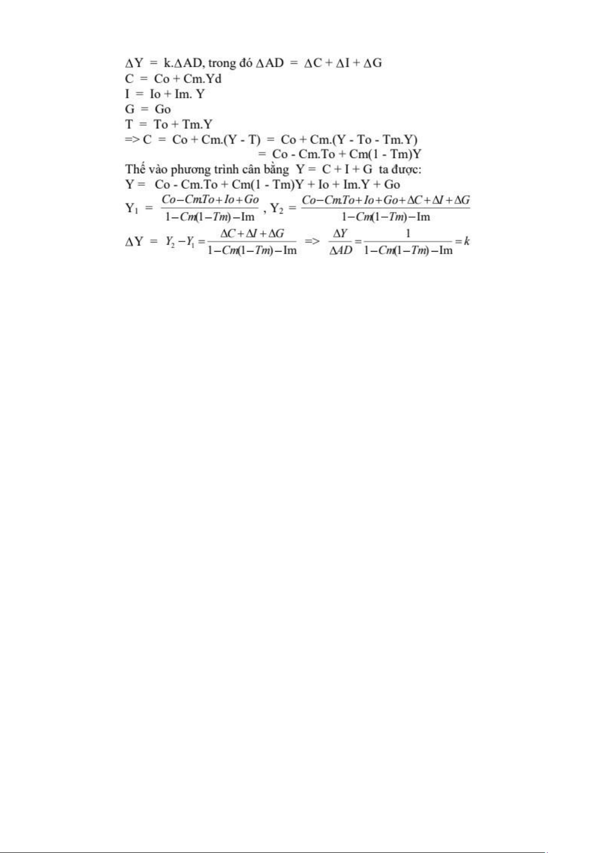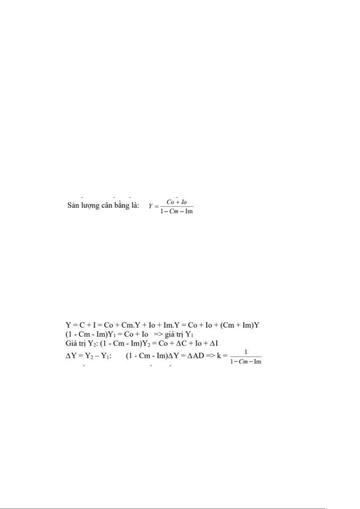 Để tìm k trước hết ta giả định lúc đầu nền kinh tế cân bằng tại mức sản lượng Y1, tương