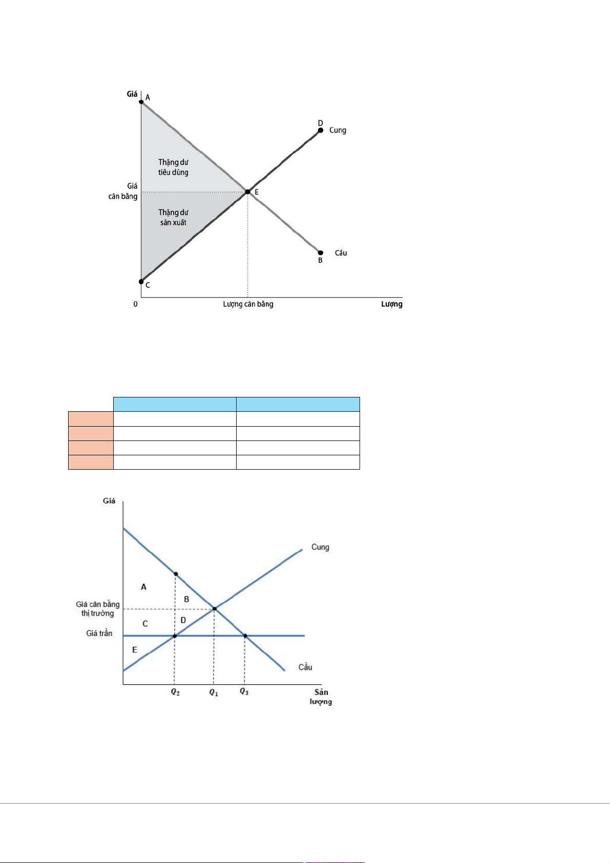 Là phần diện tích nằm trên đường cung và dưới đường giá.