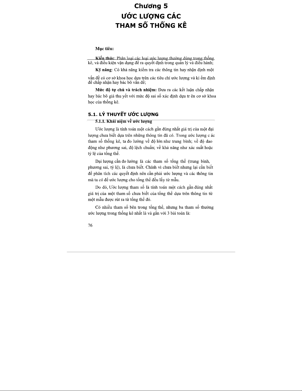 Chương 5: Ước Lượng Tham Số Thống Kê - Thống Kê Ứng Dụng