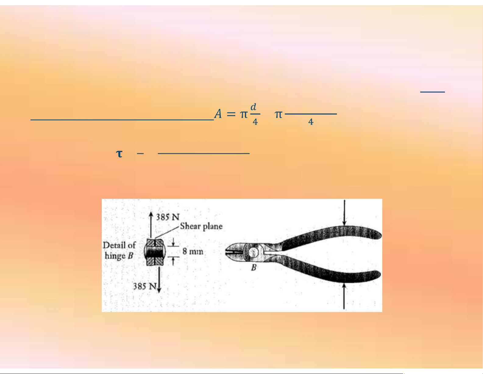VD: Hãy xác ịnh ứng suất trượt tại chốt quay B của kéo theo ơn vị của hệ SI (Pa).