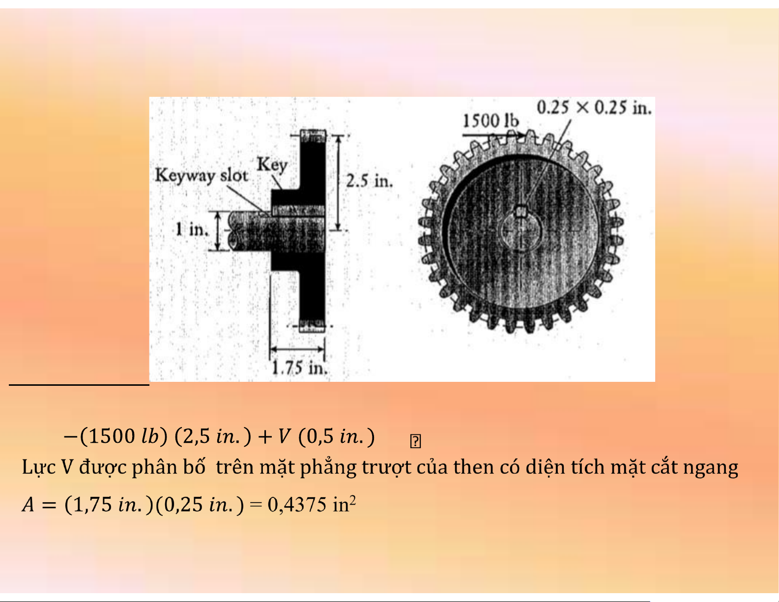 với mối ghép then có chiều dài 1,75 inch và mặt cắt ngang 0,25 x 0,25 inch. Then ược