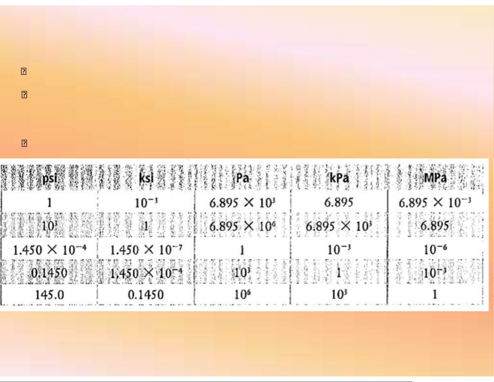 Trong hệ USCS: 1 psi = 1 lb/in2 1 ksi = 103 psi; 1 Mpsi = 106 psi;