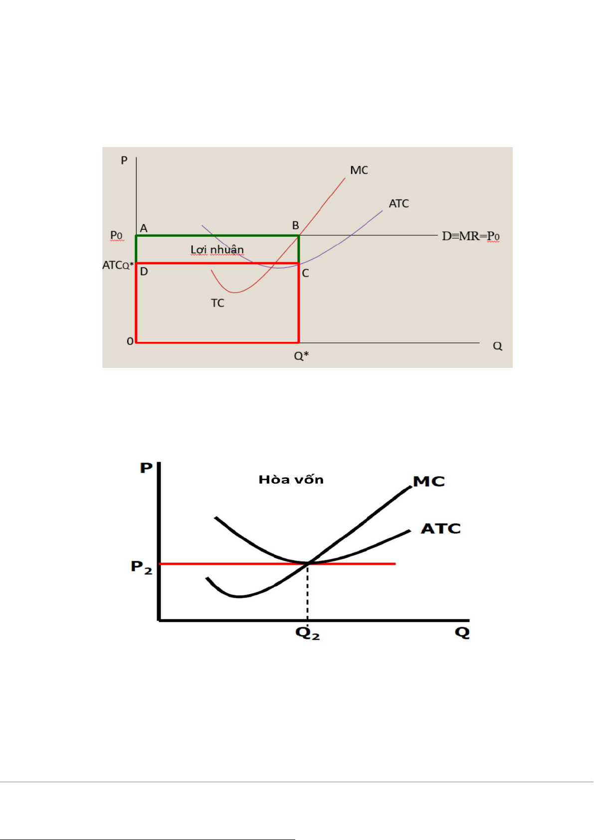 ●Trường hợp 1: Hãng có lợi nhuận TR > TC => P > ATC