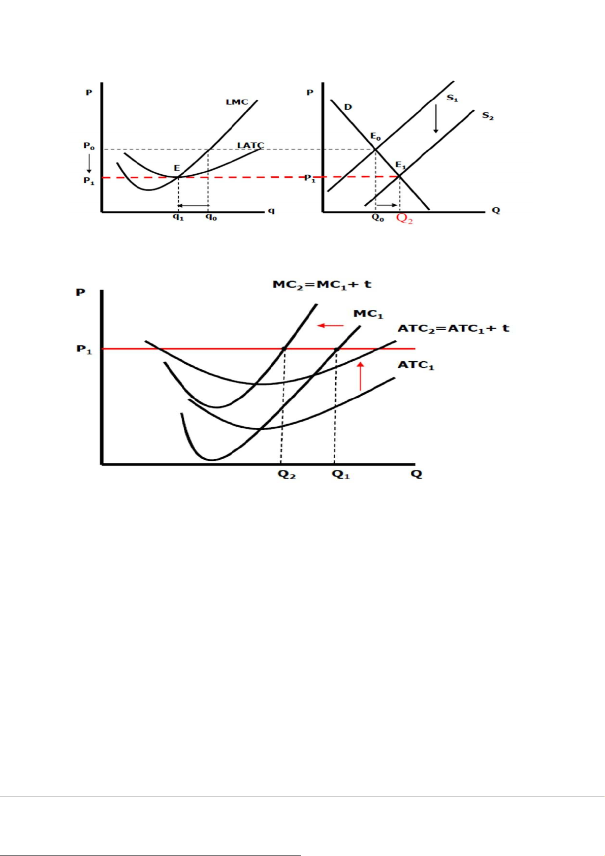 ●Thuế đánh vào từng đơn vị đầu ra ⇒ ⇒ MC và ATC ⬆ Q ⬇ ⬆ & P