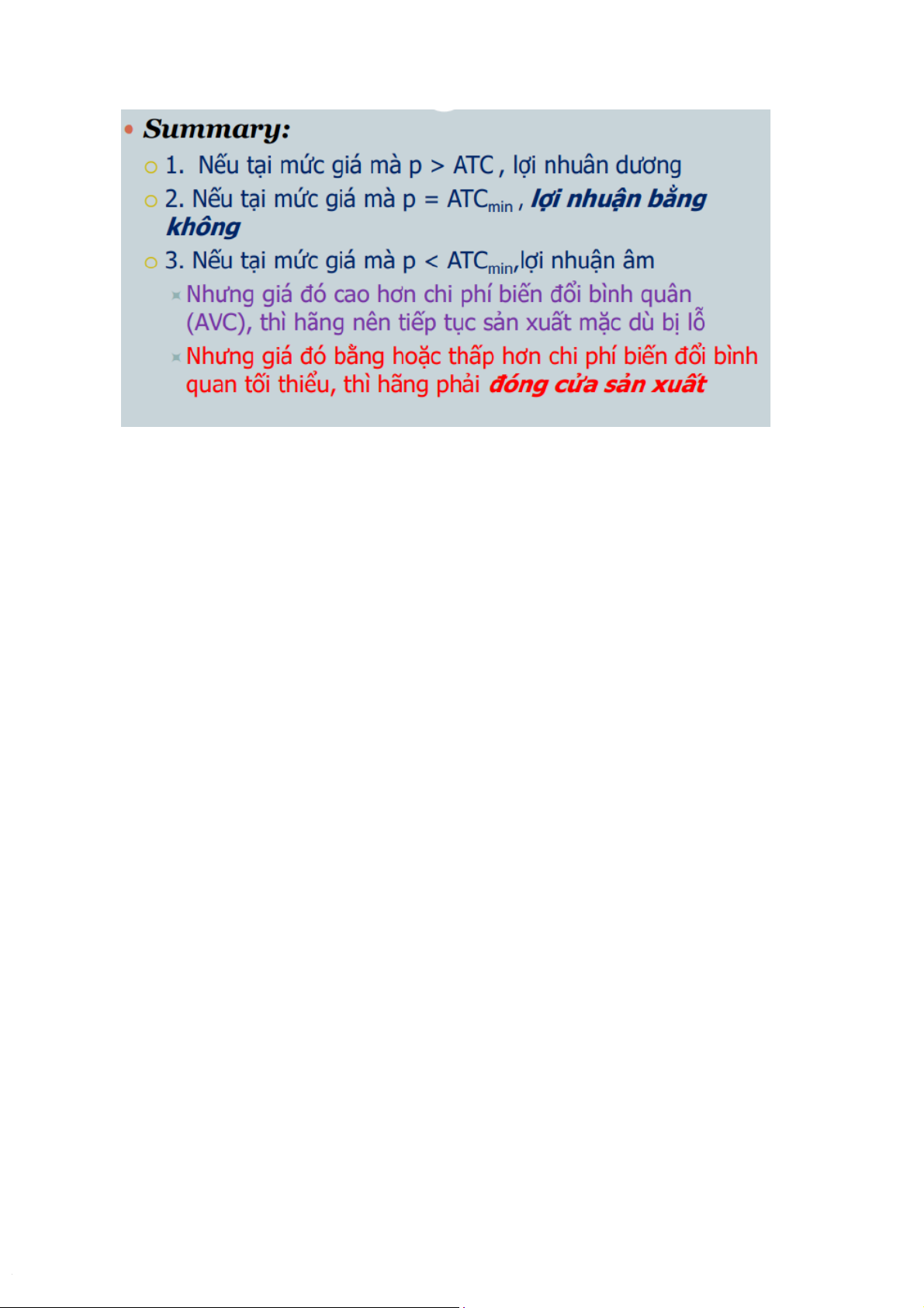 trên điểm của chi phí biến đổi bình quân tối thiểu ( Đoạn MC khi MC > AVCmin)