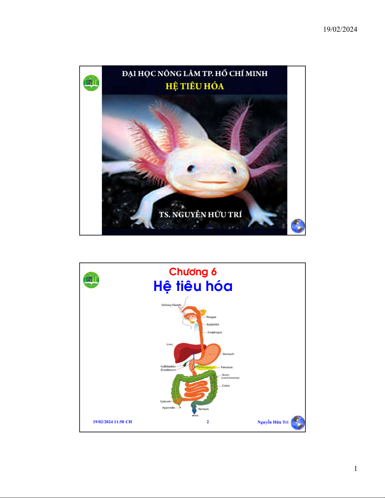 19/02/2024 1 Chöông 6 Heä tieâu hoùa 19/02/2024 11:50 CH 2 Nguyễn Hữu Trí 1 19/02/2024