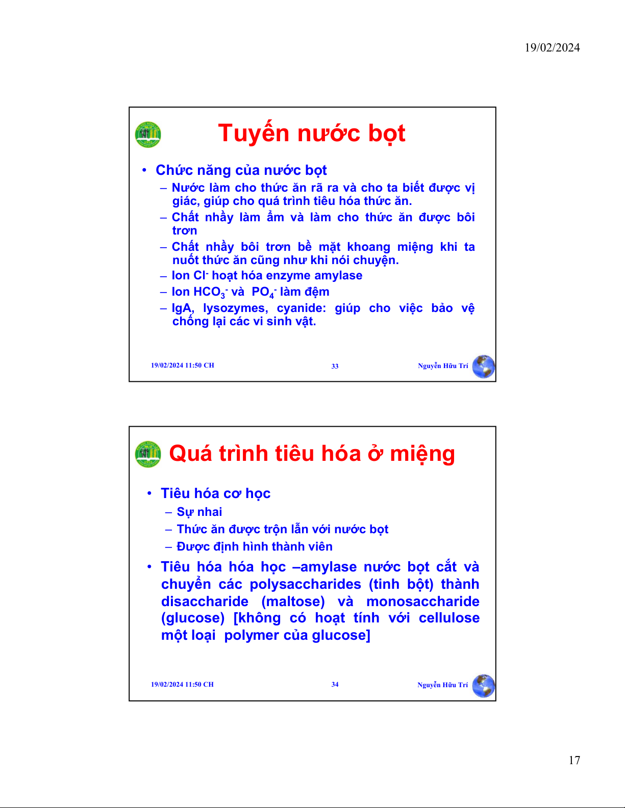 một loại polymer của glucose] 19/02/2024 11:50 CH 34 Nguyễn Hữu Trí 17 19/02/2024 Nhai (Chewing) 19/02/2024 11:50 CH 35 Nguyễn Hữu Trí