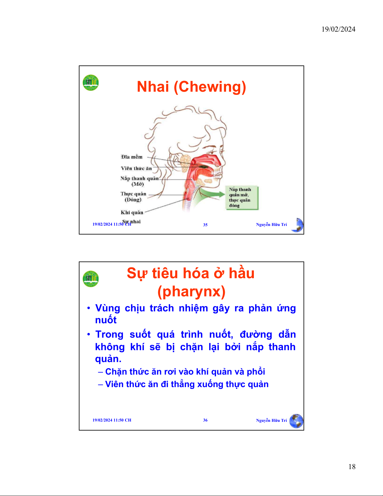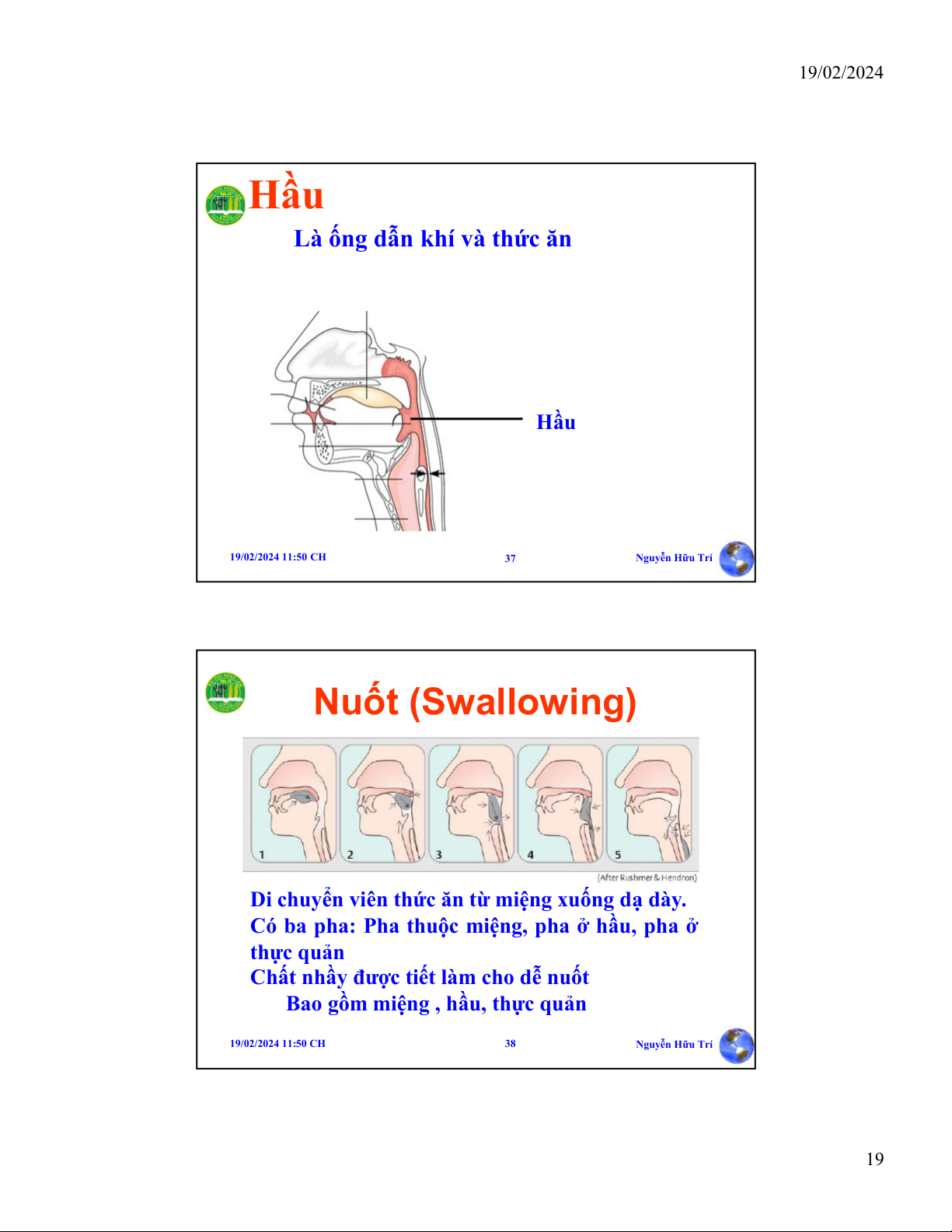 Là ống dẫn khí và thức ăn Hầu 19/02/2024 11:50 CH 37 Nguyễn Hữu Trí Nuốt (Swallowing)