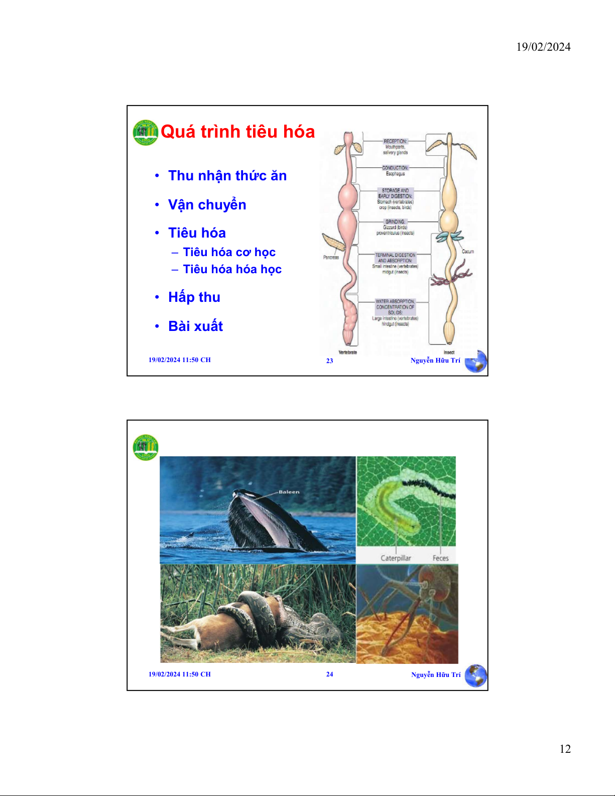 – Tiêu hóa hóa học • Hấp thu • Bài xuất 19/02/2024 11:50 CH 23 Nguyễn Hữu Trí 19/02/2024 11:50 CH 24 Nguyễn Hữu Trí 12 19/02/2024