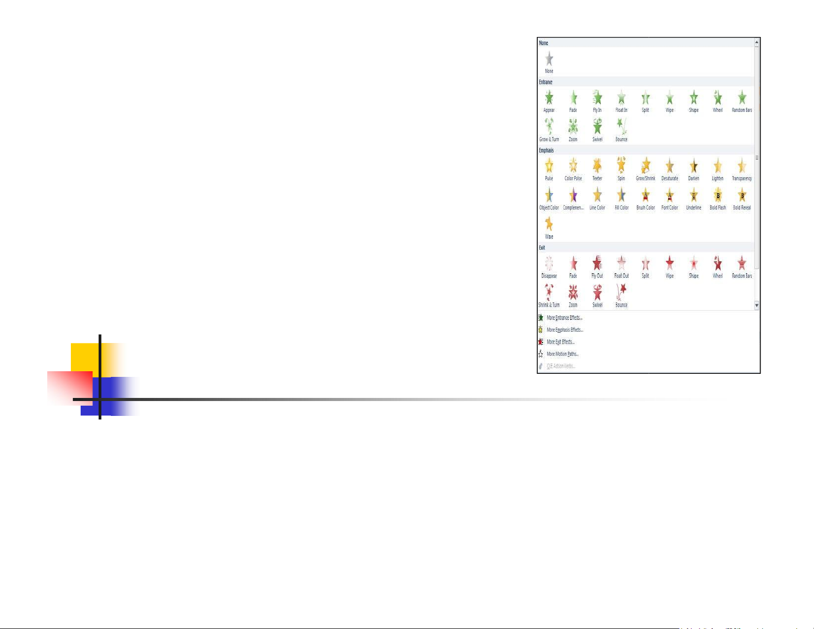 (Chọn More ….: để hiện thị thêm hiệu ứng )