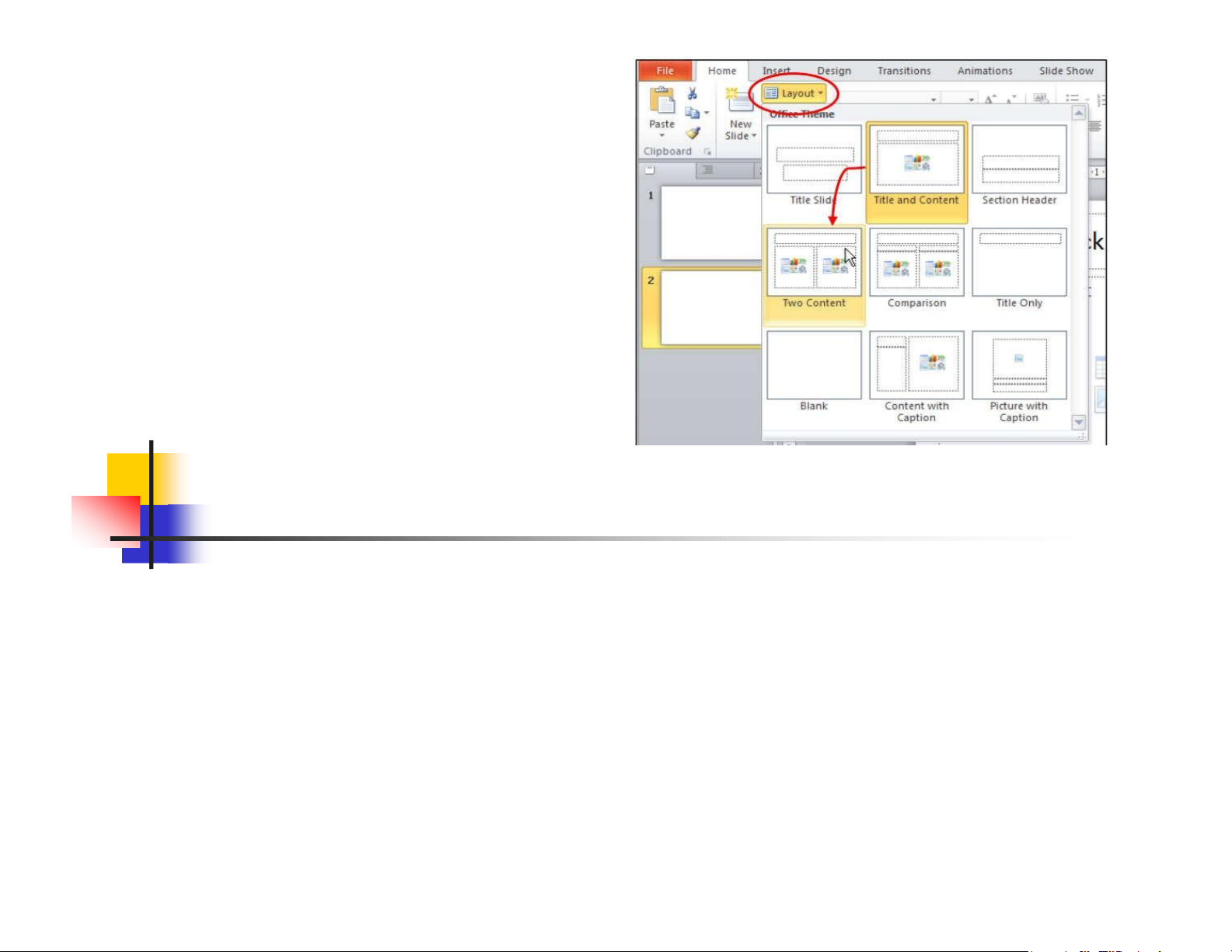 - Home/ tại nhóm Slides nhấn nút Layout