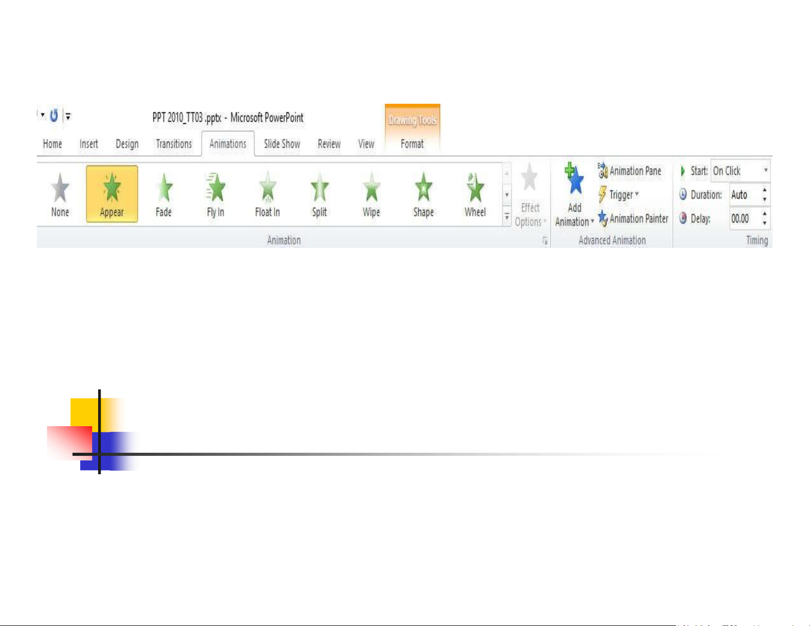 Animation/ chọn loại hiệu ứng o B3: Chọn tùy chọn cho