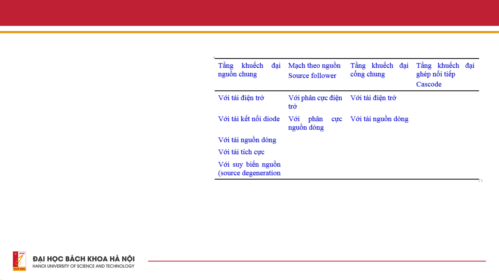 - Trình bày bốn loại bộ khuếch đại: cấu trúc liên kết nguồn chung và cổng chung, mạch theo nguồn (source