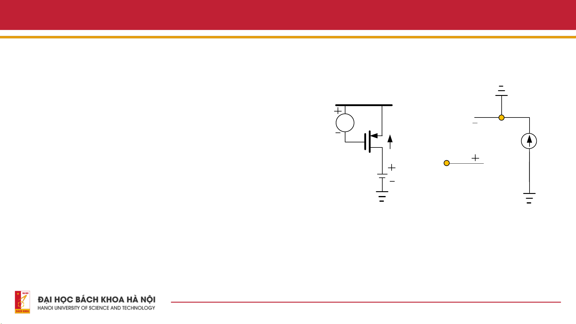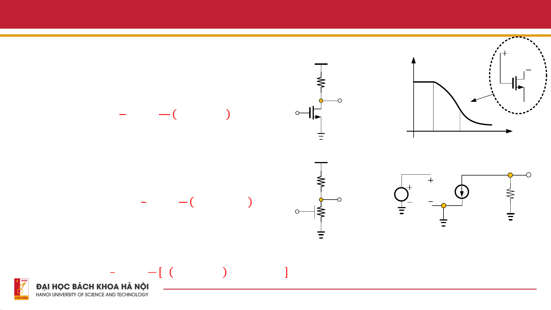 Mô hình tín hiệu nhỏ của NMOS (a) (b) ≈ 1+ 𝑉𝐷𝑆 G D G D 𝐼𝐷 V a GS gmVGS VGS gmVGS VDS ≈ 1 𝐼𝐷 S S Đk λV << 1. r ảnh hưởng đến DS O