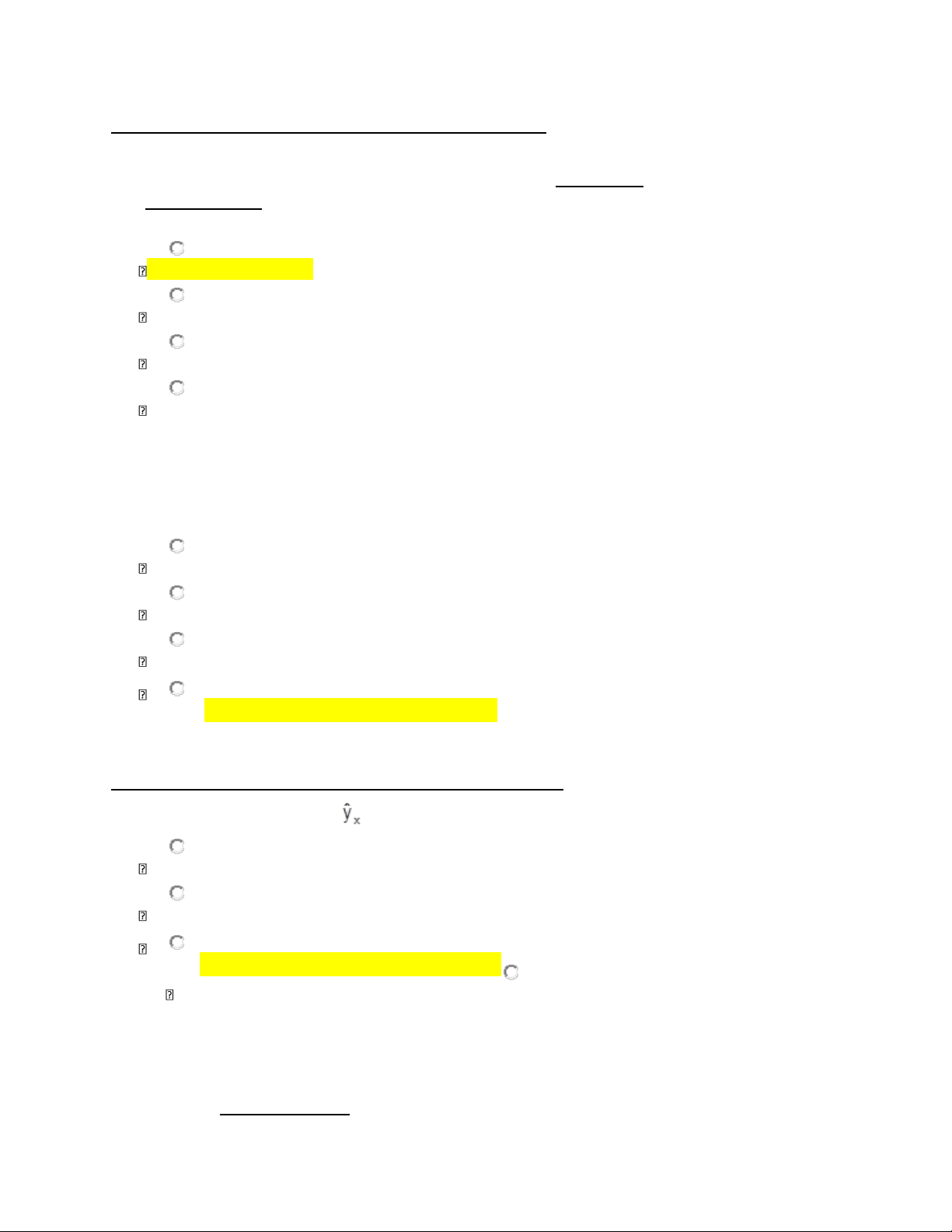 Vì: Giá trị lý thuyết của biến phụ thuộc tính được bằng cách thay các giá trị của x vào phương trình hồi qui lý thuyết Câu 9: