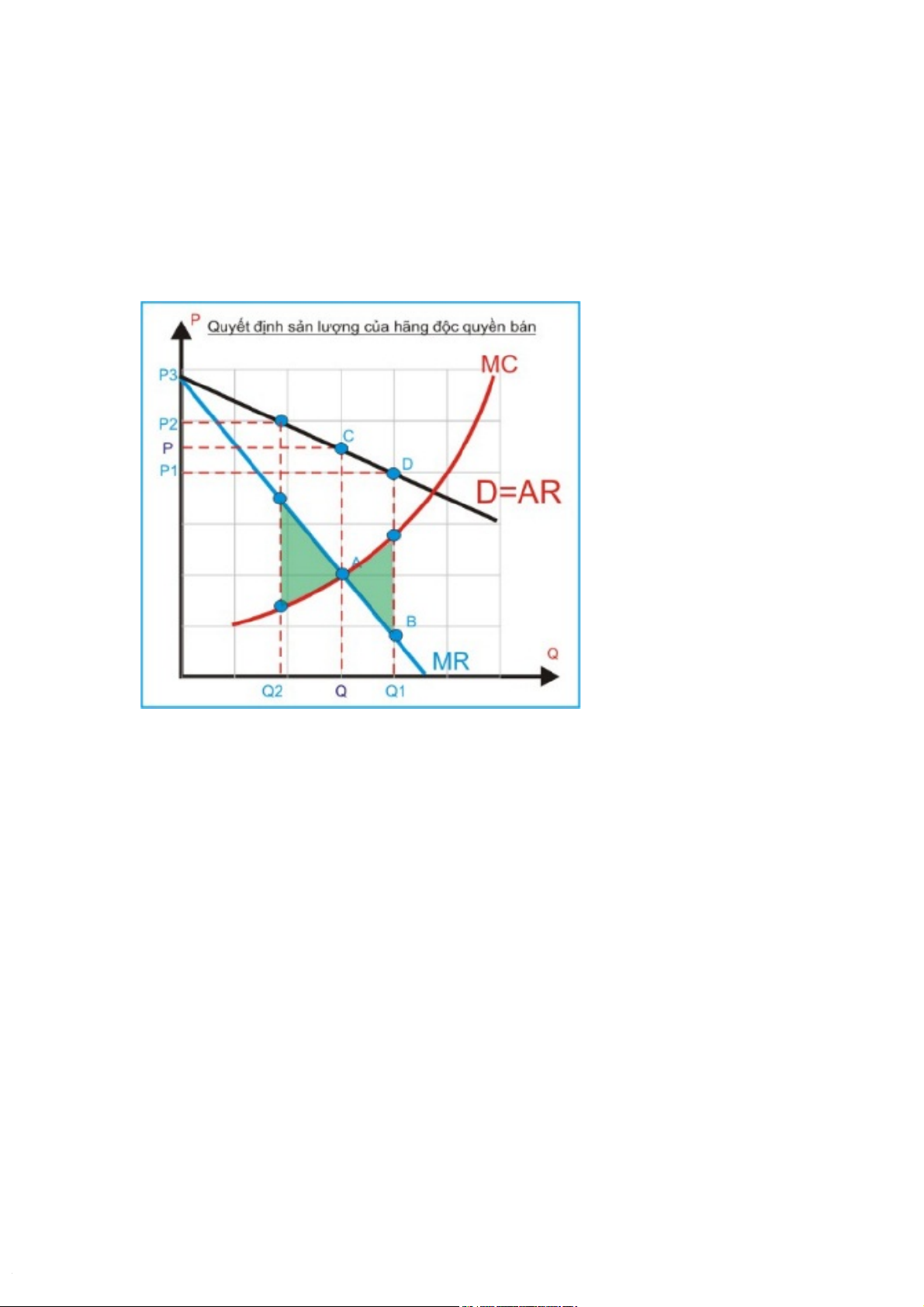 đường AC tại điểm F. Lúc nãy MC=MR1 dẫn đến cực đjai hóa ở sản lượng Q1 ở