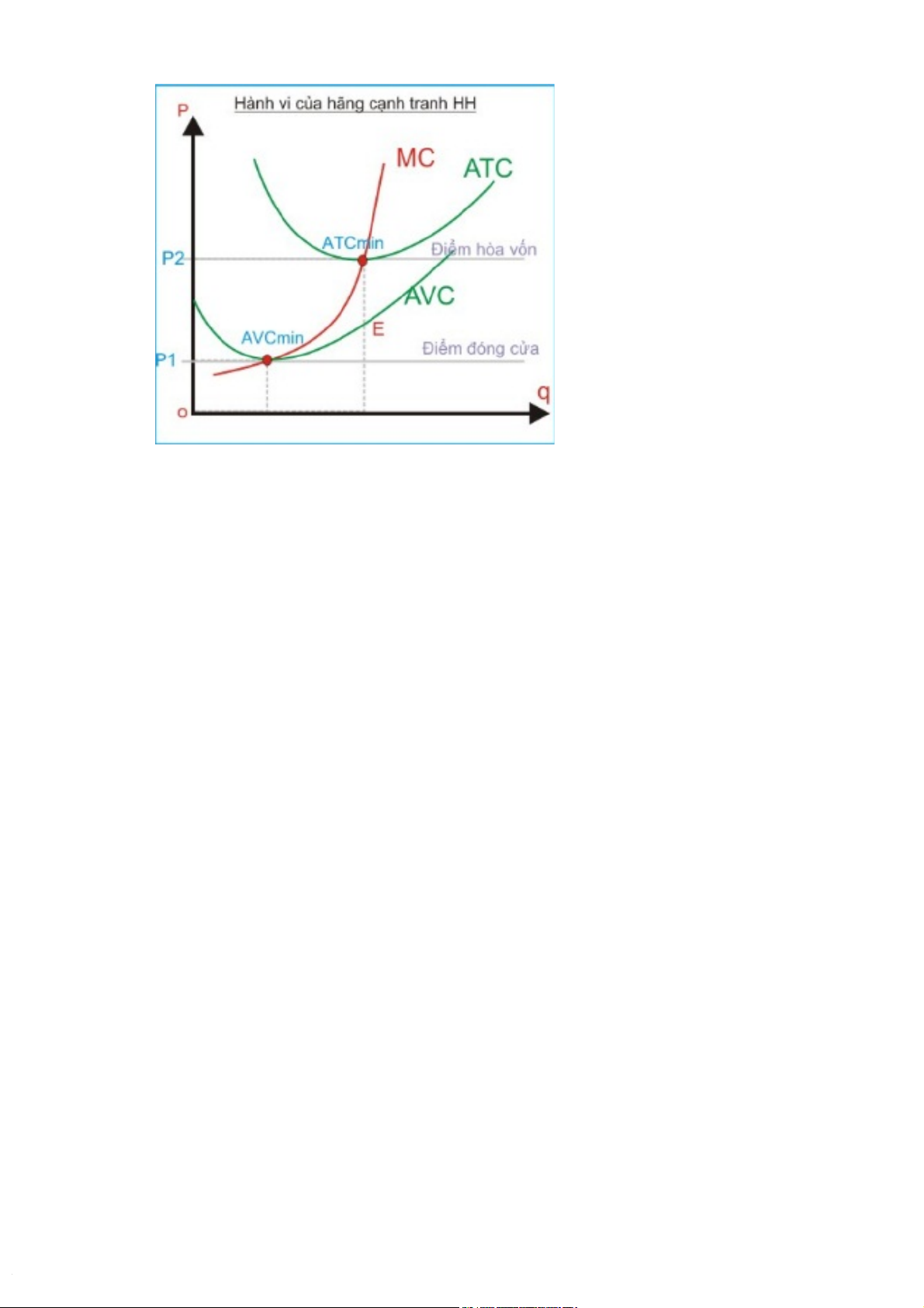 Tại điểm mà giá bán nhỏ hơn chi phí biến đổi bình quân thấp nhất AVC thì doanh nghiệp