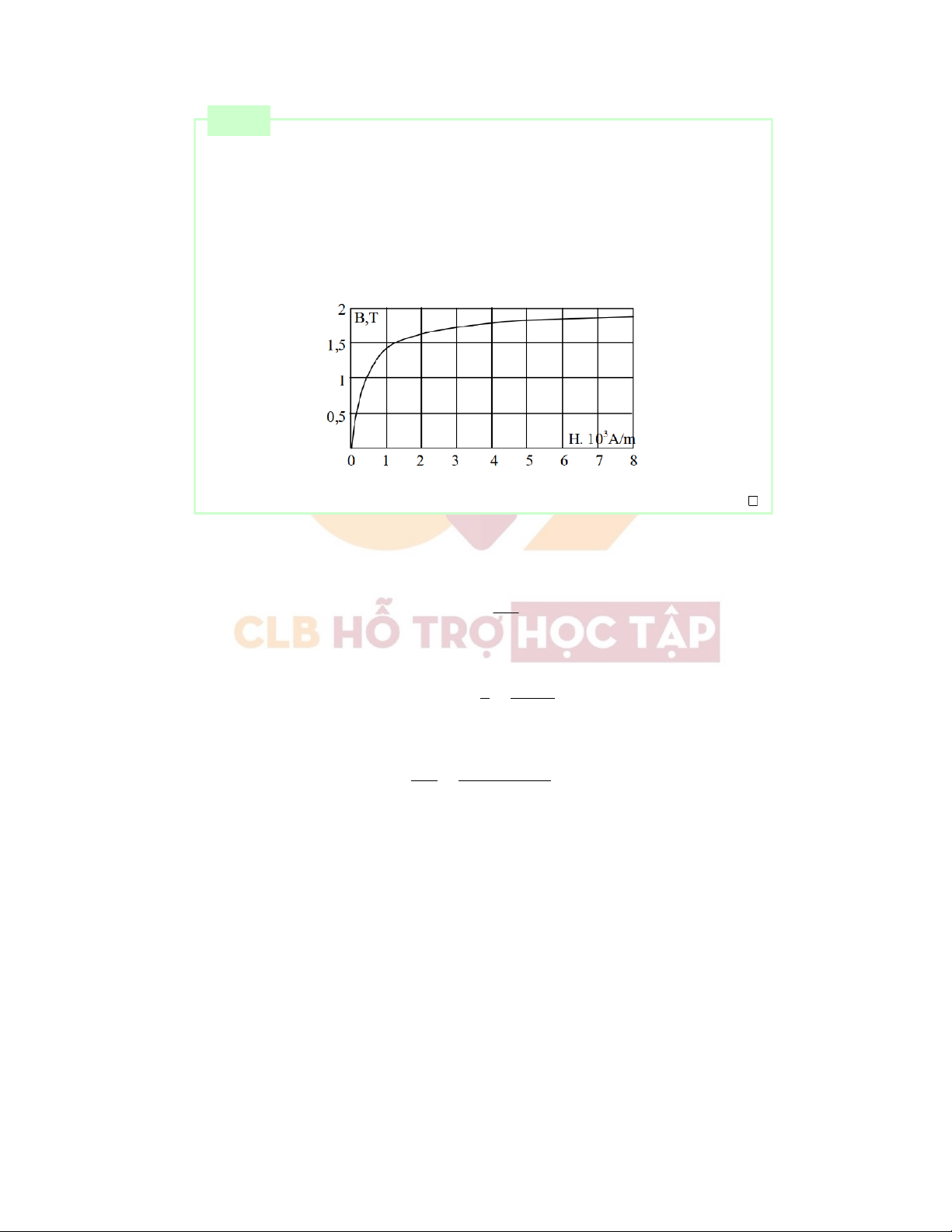 Từđồthịtrên,tathấyứngvớiB= 1,4T,cườngđộtừtrườngsẽcógiátrịH= 0,8.103A/m.Dođó: