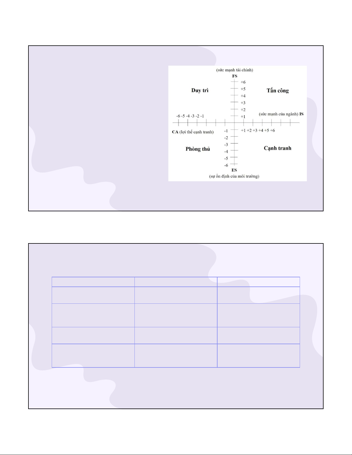 Ma trận giúp doanh nghiệp xác định loại chiến lược tổng thể phù hợp (tăng trưởng, ổn định hay thu hẹp). Vị thế cạnh tranh mạnh Vị thế cạnh tranh yếu