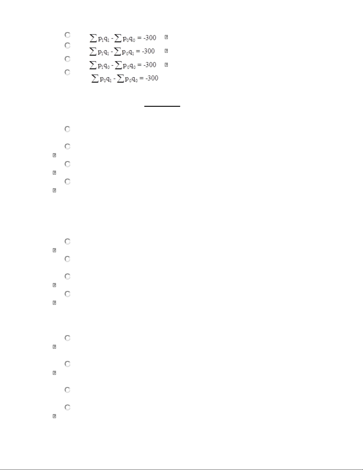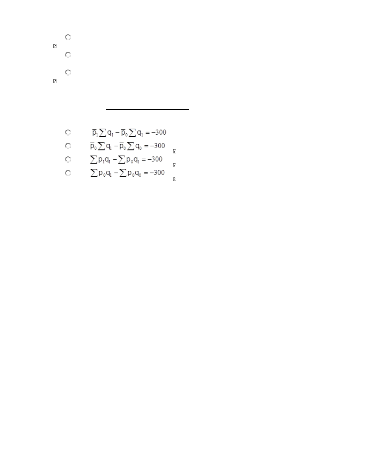 sản xuất của xí nghiệp kỳ nghiên cứu so với kỳ gốc giảm 300 triệu đồng, khi đó Chọn một câu trả lời • A) B) C) D) PHẦN II