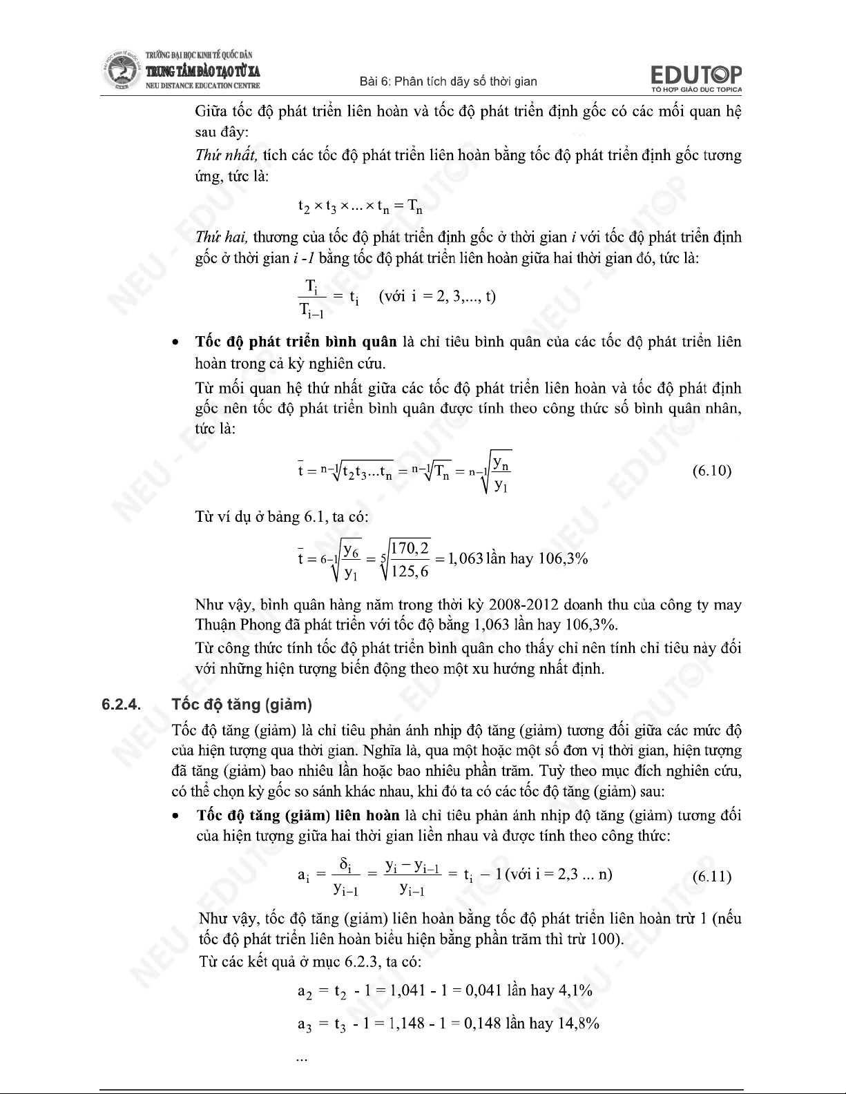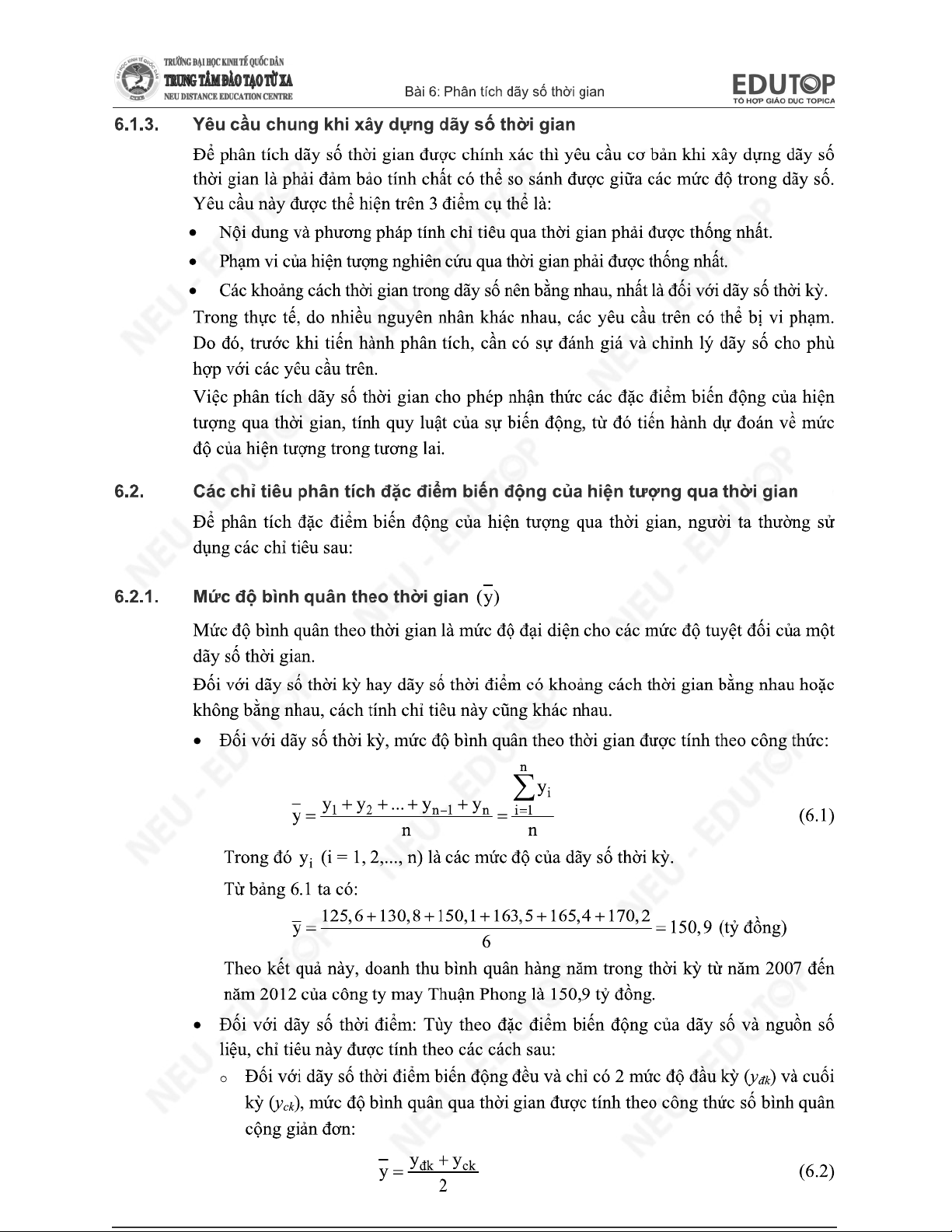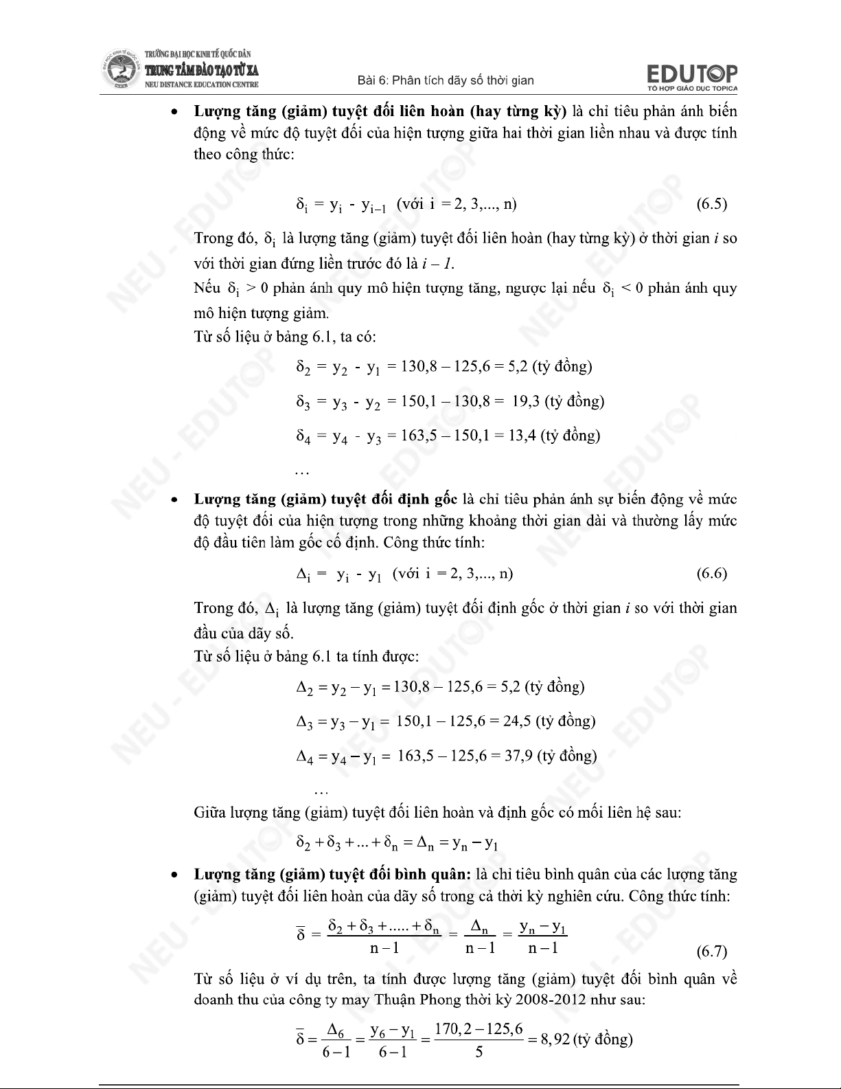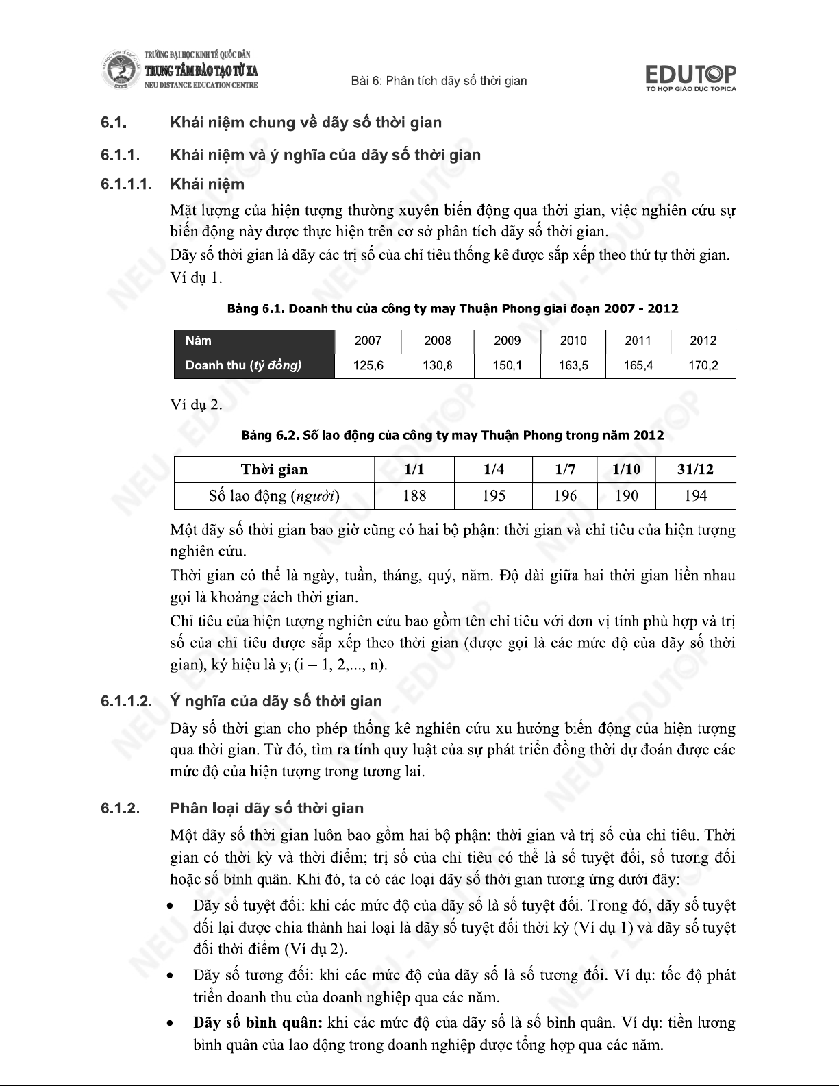 Chương 7 - Phân Tích Dãy Số Thời Gian môn Thống kê trong kinh tế và kinh doanh | Trường Đại học Kinh tế Quốc dân