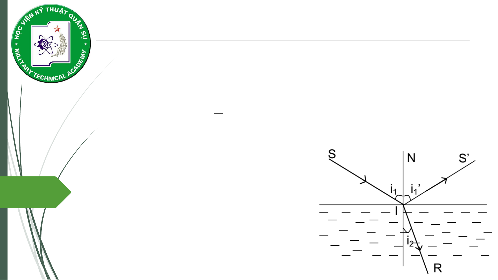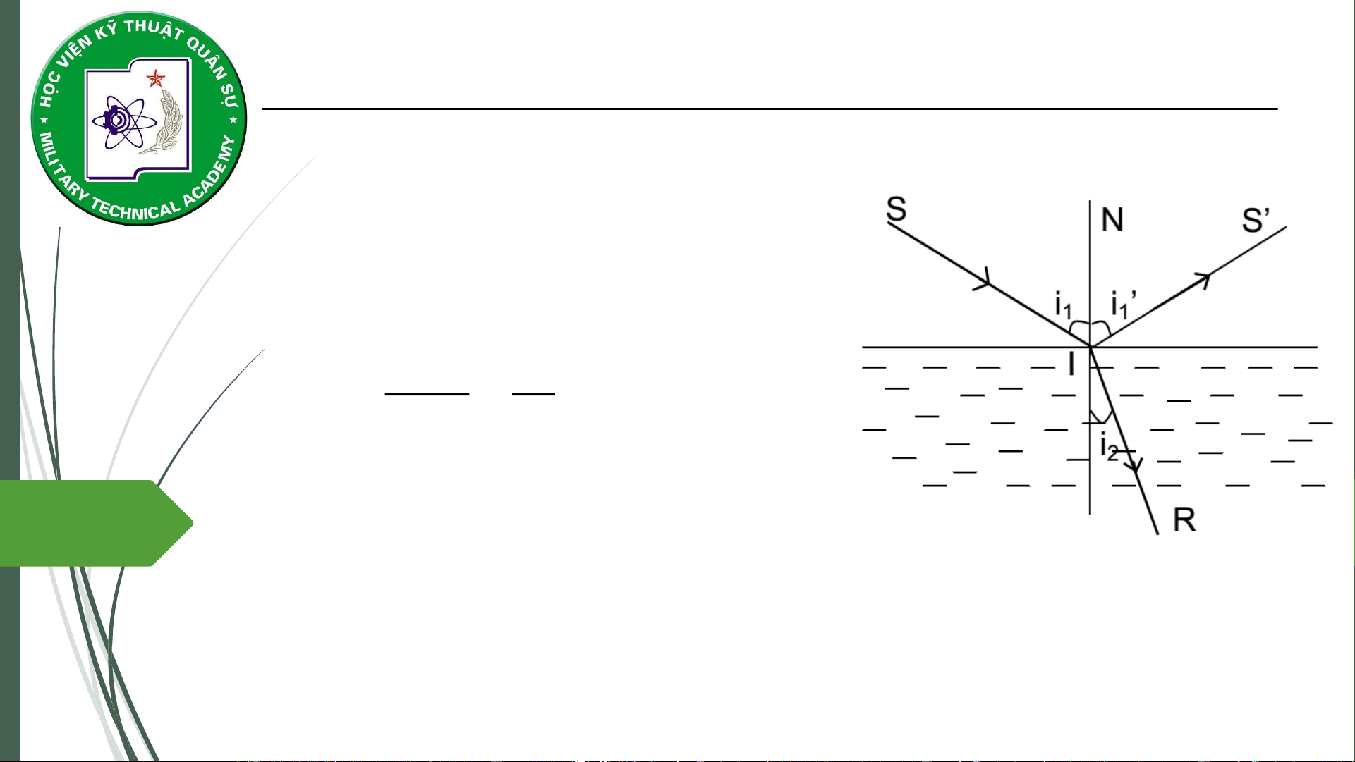 tuyến mặt phân cách) và góc tới bằng góc phản xạ: i i 1 1