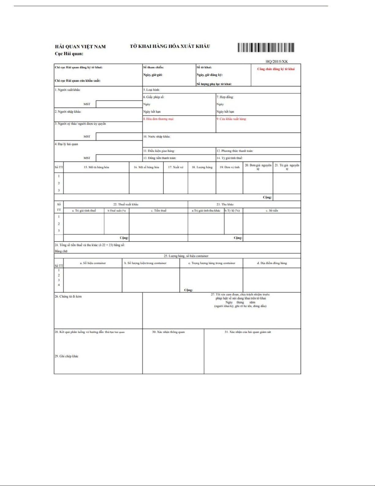 cục Hải quan cửa khẩu tạm nhập. • Khai hải quan tái xuất: