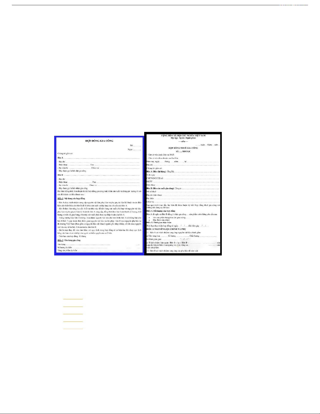 và hàng hóa đặt gia công ở nước ngoài: (Gia công theo hợp đồng): Trong hình thức này, công ty