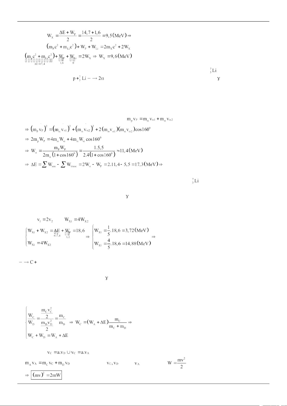 mp)2. Động năng hạt α là A. 1,555 MeV. B. 1,656 MeV. C. 1,958 MeV. D. 2,559 MeV. Hướng dẫn 18