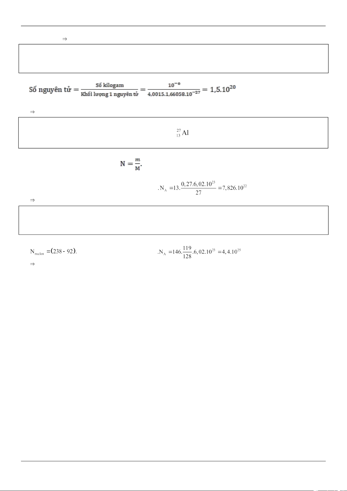 Ví dụ 5: (ĐH−2007) Biết số Avôgađrô là 6,02.1023 /mol, khối lượng mol của urani U238 là 238