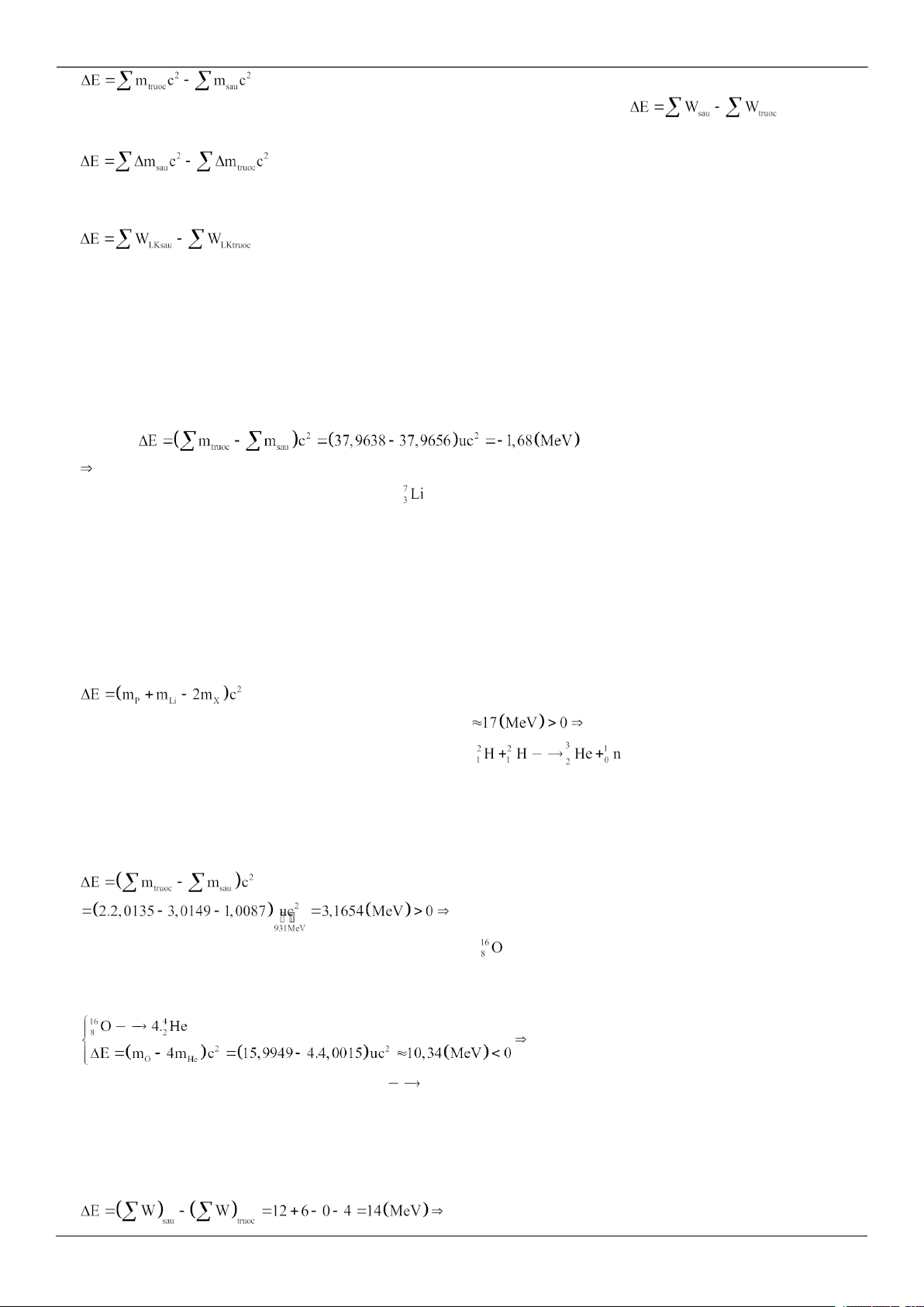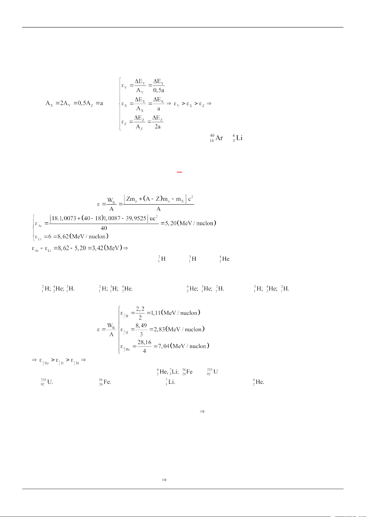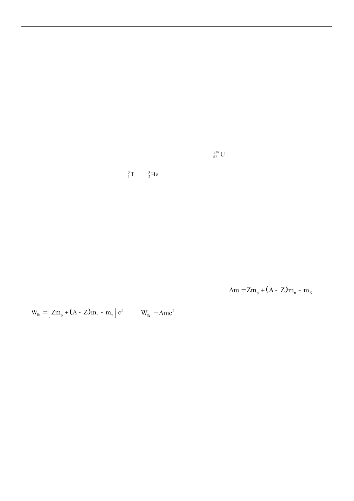 Năng lượng phản ứng hạt nhân: + Cho WA tính được ΔE + Cho ΔE tính được WA