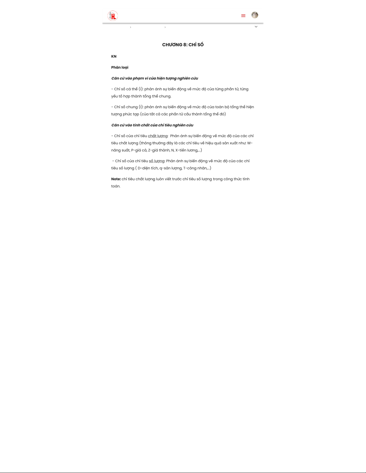 - Chỉ số của chỉ tiêu chất lượng: Phản ánh sự biến động về mức độ của các chỉ