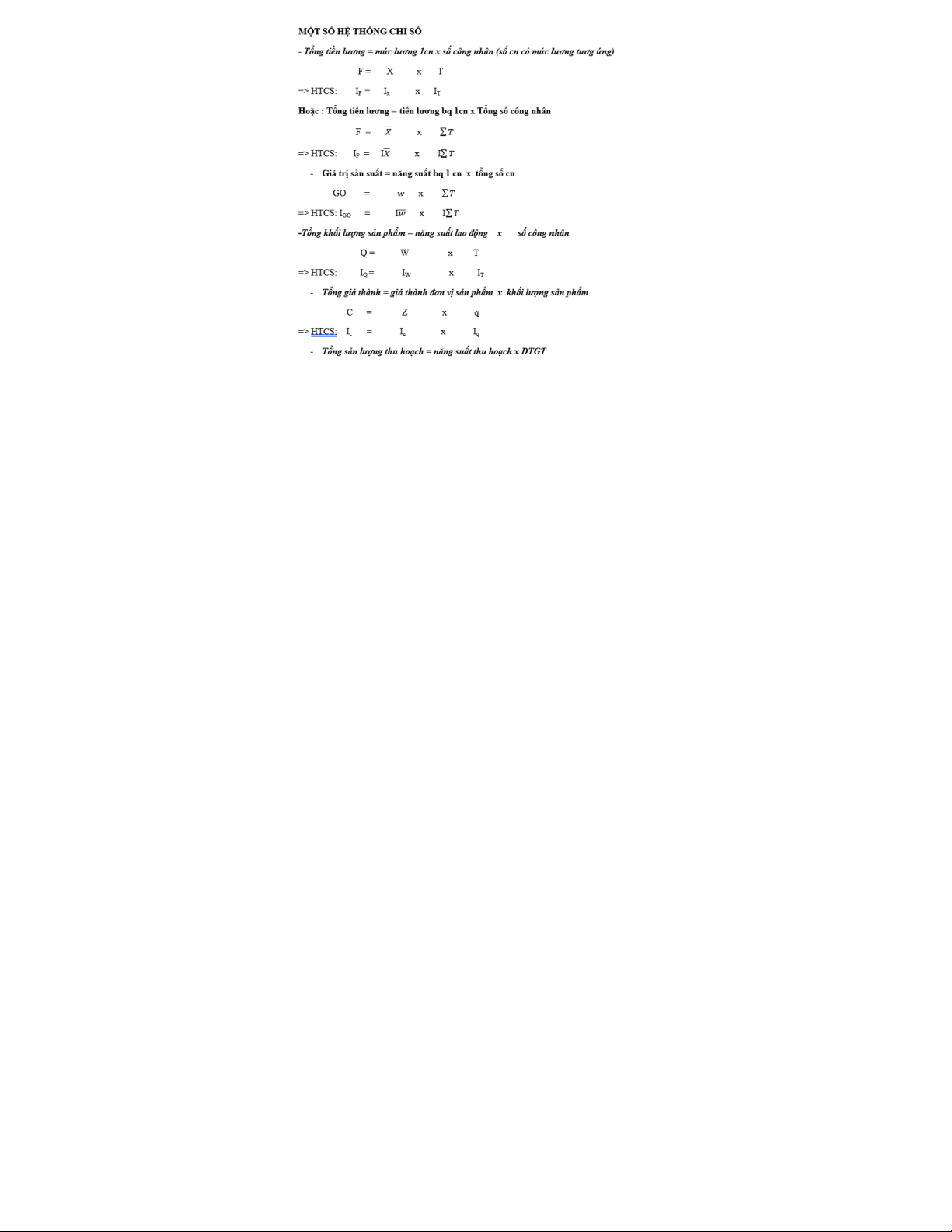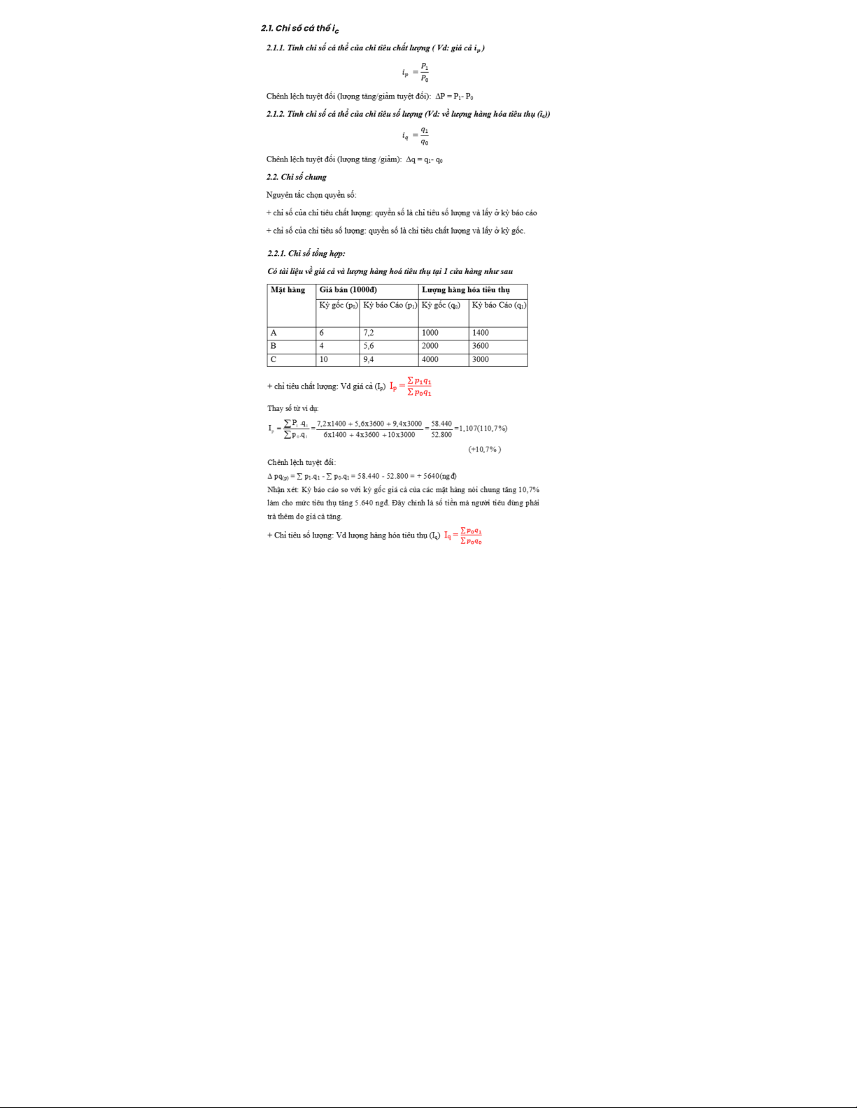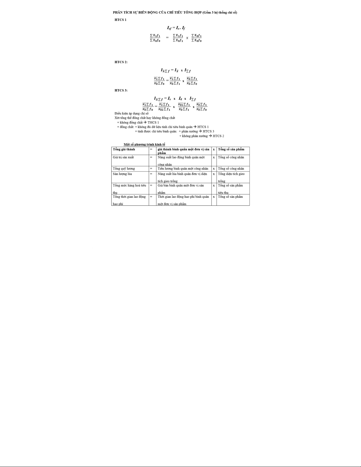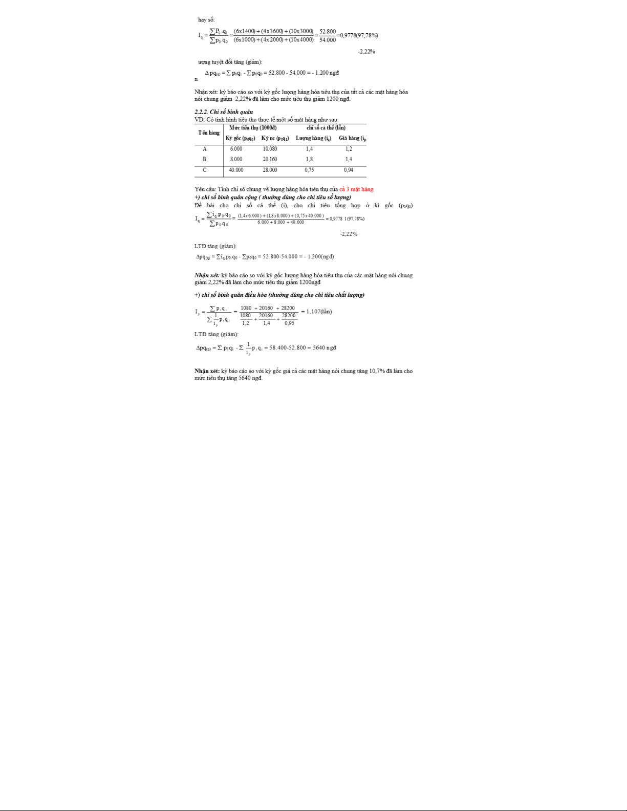 - Chỉ số chung (I): phản ánh sự biến động về mức độ của toàn bộ tổng thể hiện